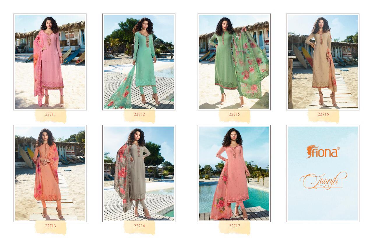 Buy Online Saanjh By Fiona Series 22711 To 22717 Designer Party Wear Suits Wholesale Supplier Surat 7 Pcs of Full Catalogue at Wholesale Price. Looking for Saanjh By Fiona Series 22711 To 22717 Designer Party Wear Suits Wholesale Supplier Surat Full Catalouge at Best Price? Buy Now Saanjh By Fiona Series 22711 To 22717 Designer Party Wear Suits Wholesale Supplier Surat at Wholesale Rate of Rs 15365 with Total 7 Pcs from authroized dealer and supplier of FIONA Brand. Cost of Each piece is just only Rs 2195 which is very low and affordable price to resale the product in your retail store ,This is Surat based Wholesale Supplier & Dealer of FIONA Brand. Click on Brand name to Know more about FIONA Brand's products.Call or Whatsapp on 9898838984 for booking or enquiry