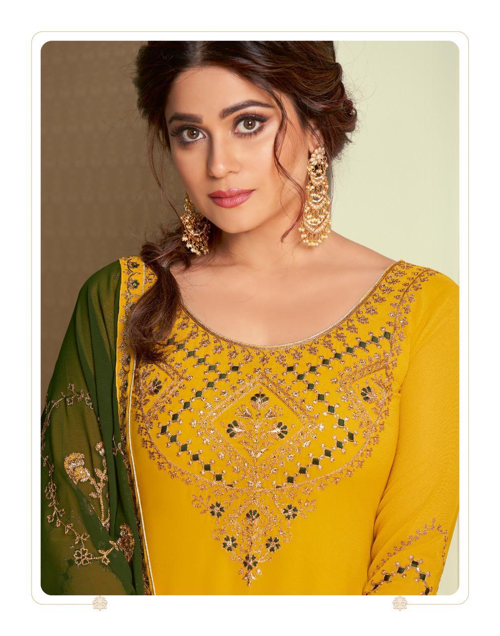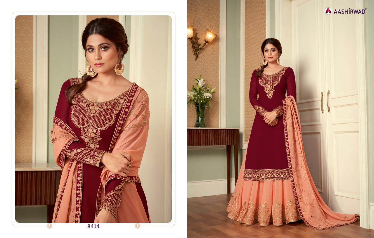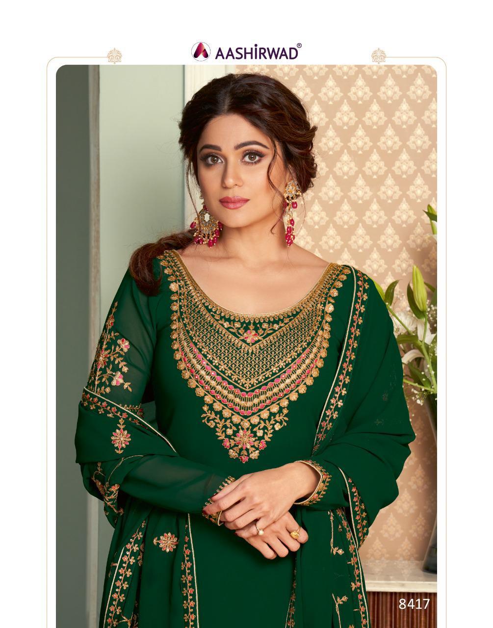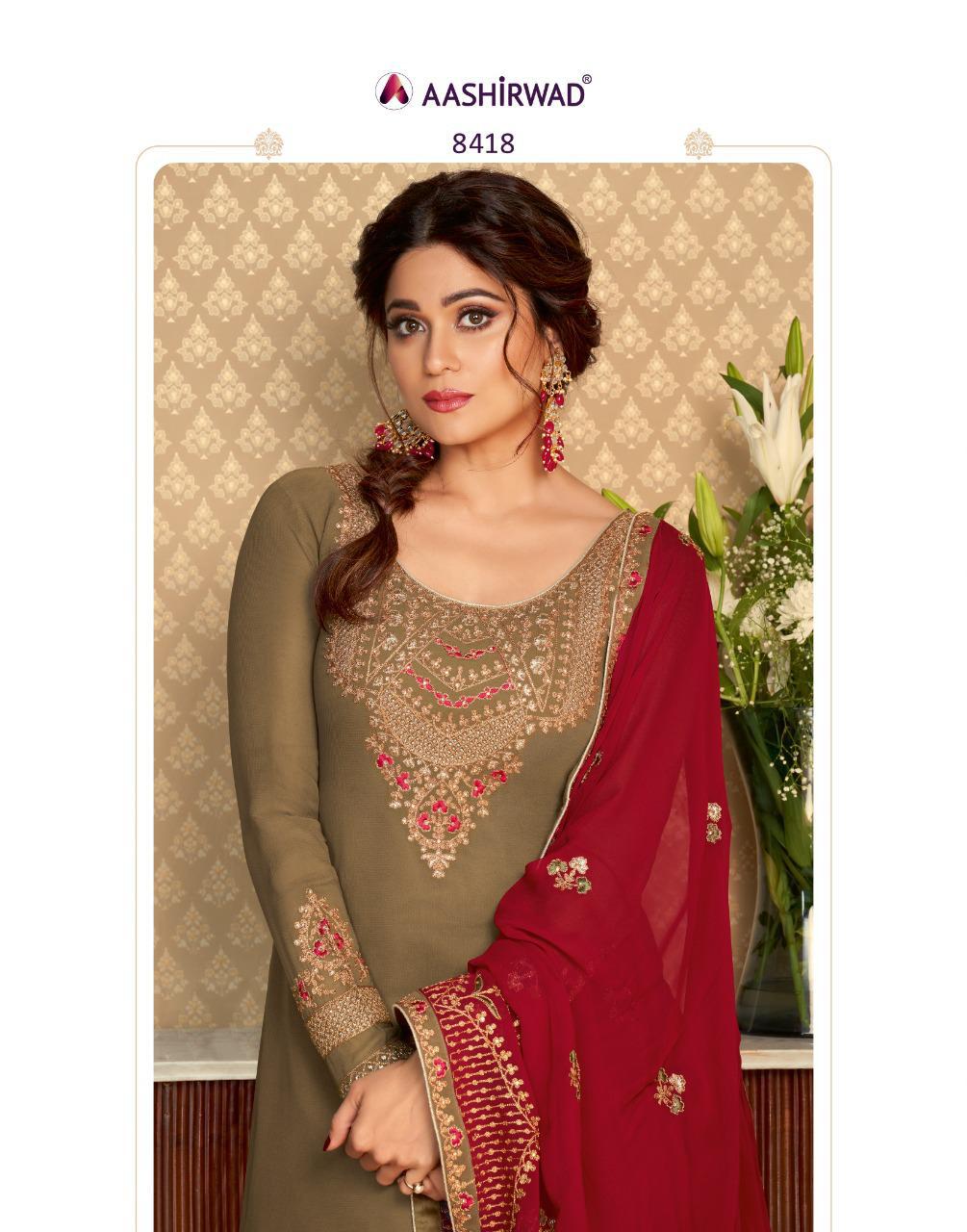 AASHIRWAD SAARA (5 pcs ) Top - Real georgette Inner - Dull Santoon Skirt -Real georgette front n back Emb. (Free size stitch ) Price - 2695 per Pcs. * GST 12 Percent Extra * * set & loose & singel * HSN CODE - 630790 Dispatching in 3 days !!!! 100+single |