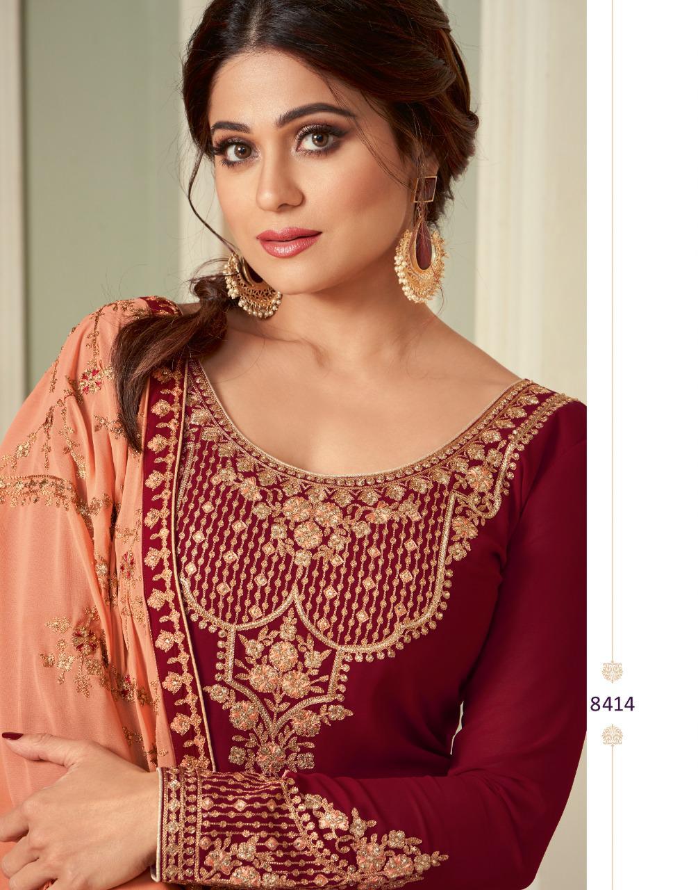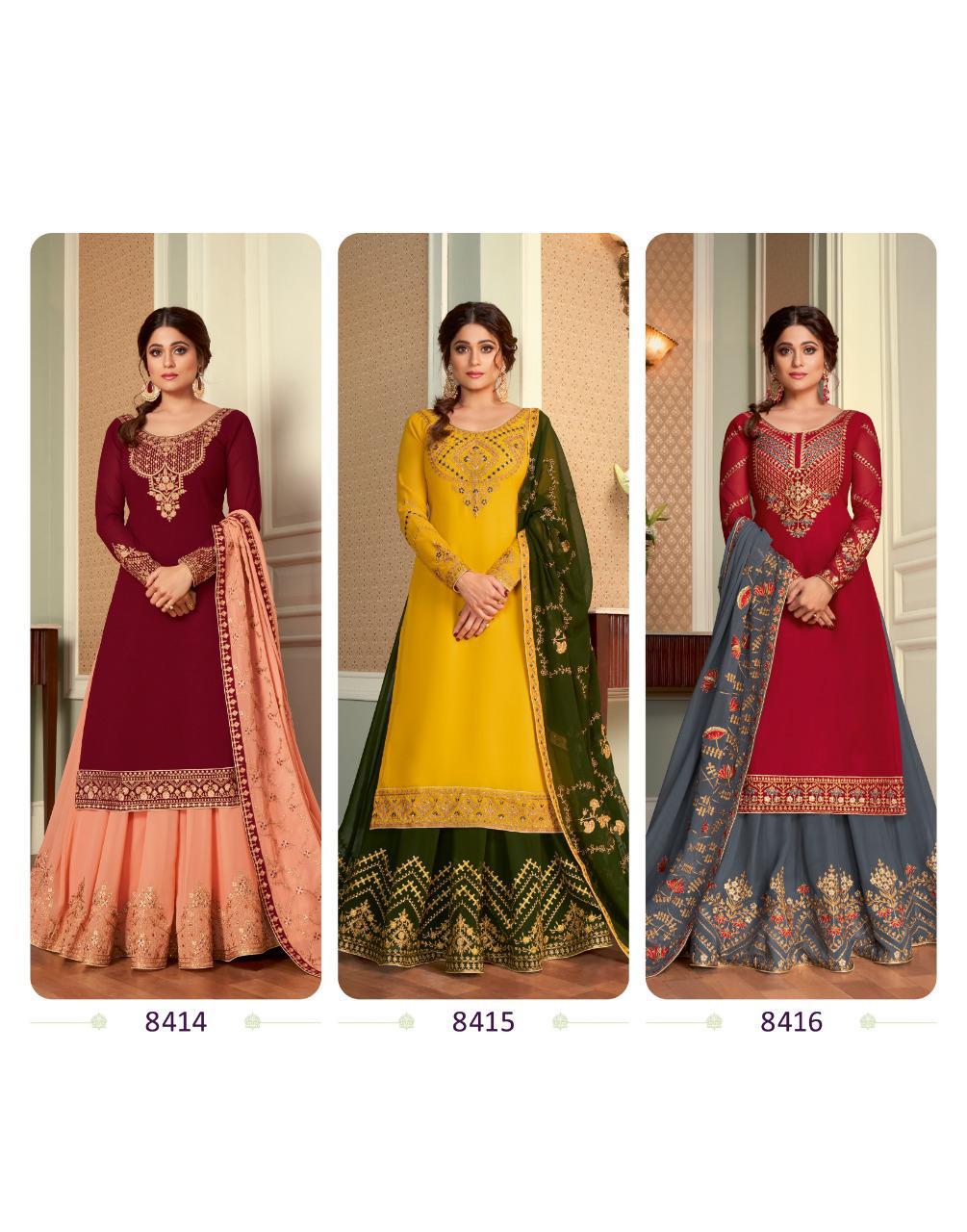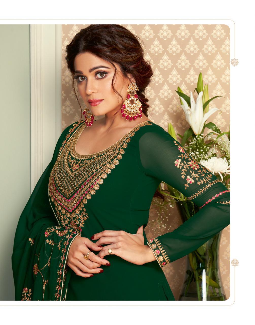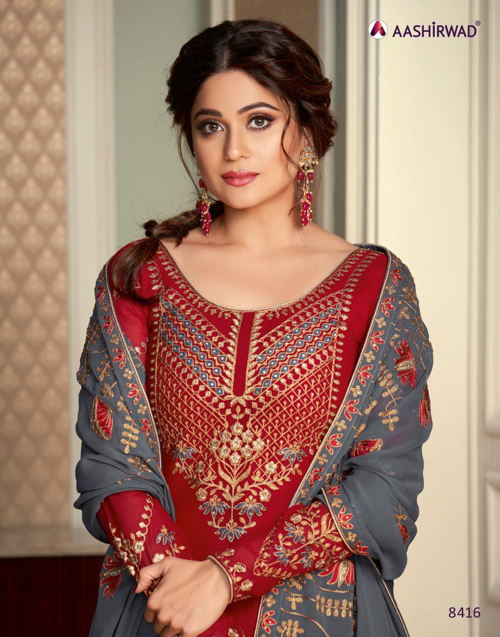 AASHIRWAD SAARA (5 pcs ) Top - Real georgette Inner - Dull Santoon Skirt -Real georgette front n back Emb. (Free size stitch ) Price - 2695 per Pcs. * GST 12 Percent Extra * * set & loose & singel * HSN CODE - 630790 Dispatching in 3 days !!!! 100+single |