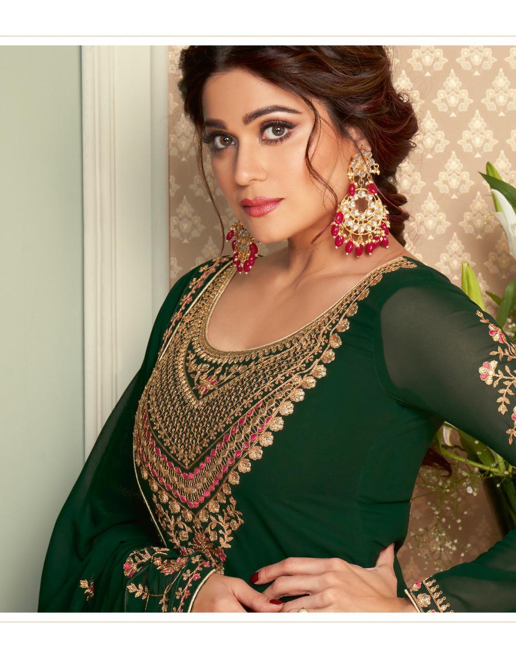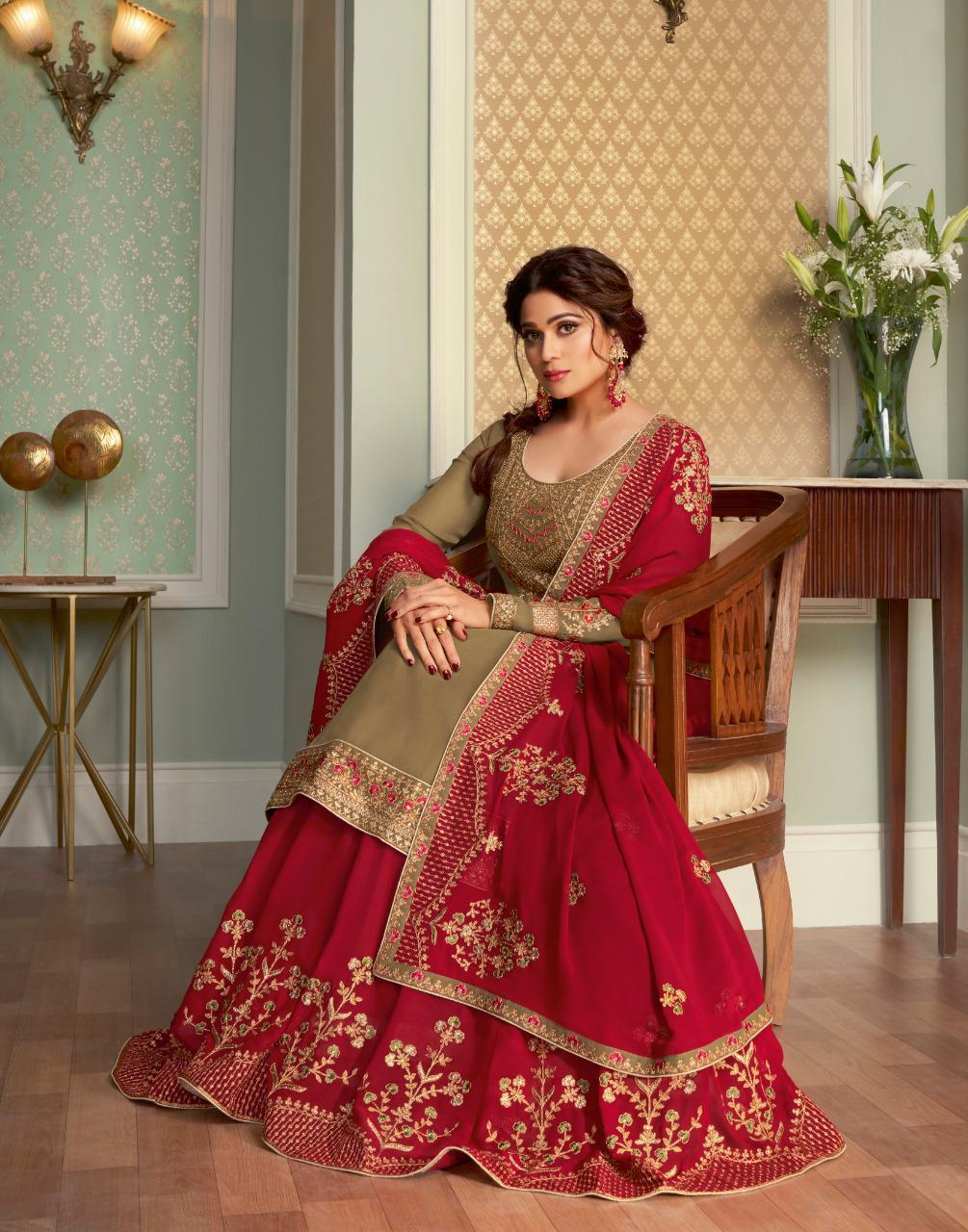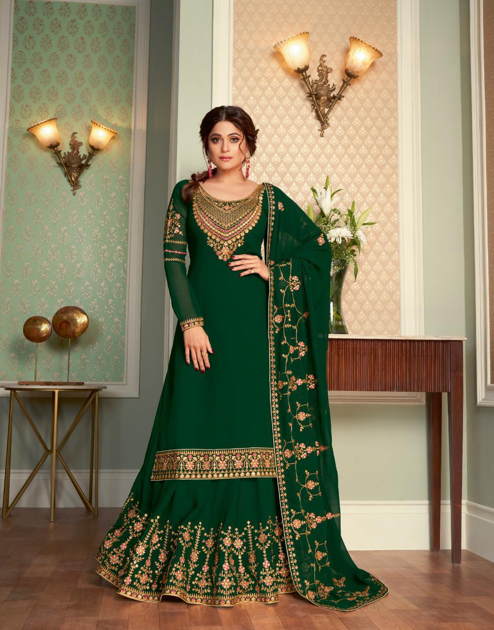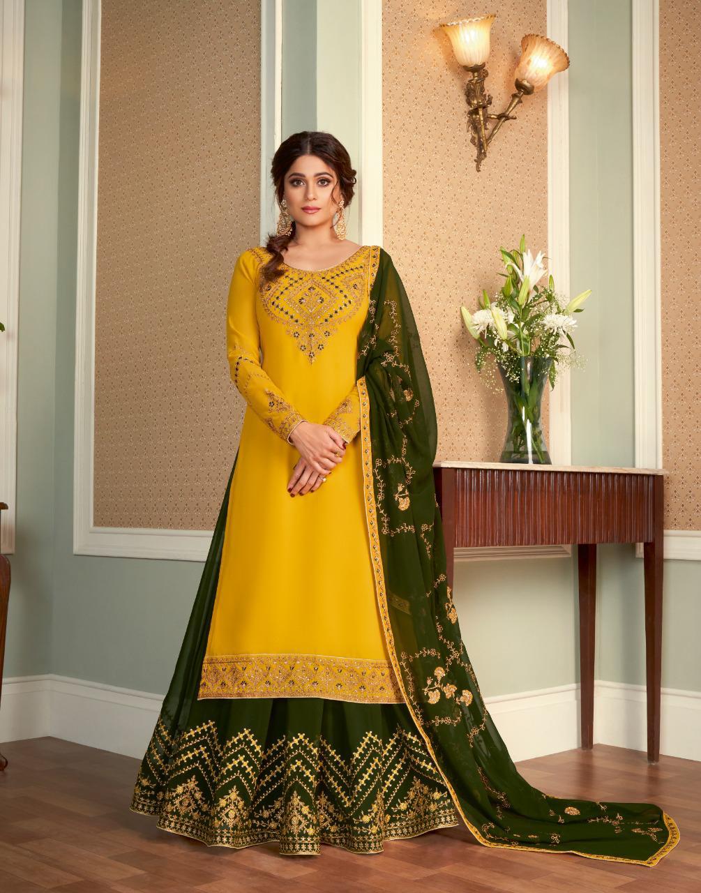 AASHIRWAD SAARA (5 pcs ) Top - Real georgette Inner - Dull Santoon Skirt -Real georgette front n back Emb. (Free size stitch ) Price - 2695 per Pcs. * GST 12 Percent Extra * * set & loose & singel * HSN CODE - 630790 Dispatching in 3 days !!!! 100+single |