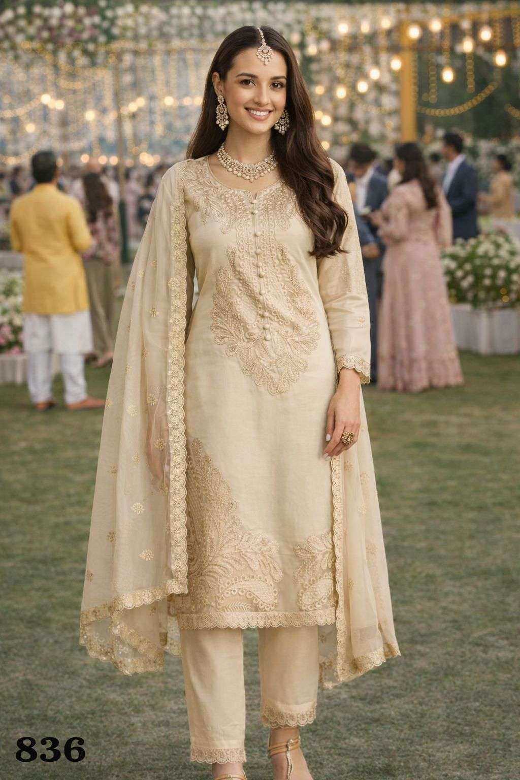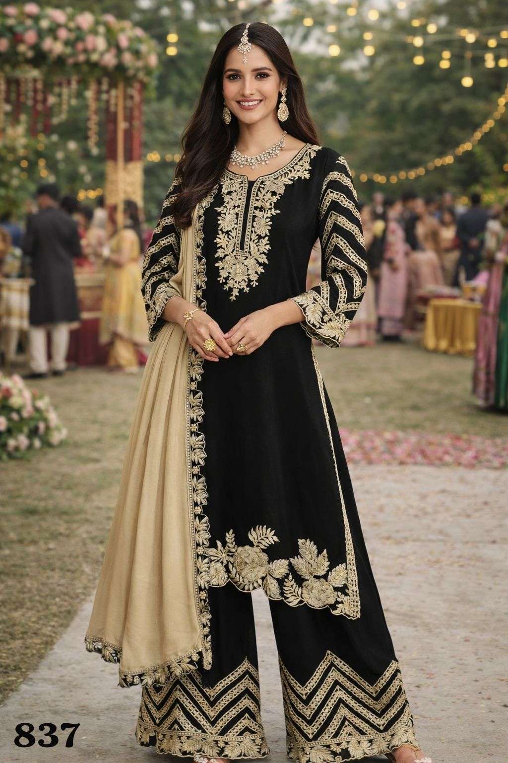 PRESENT NEW CATLOG BRAND - MRUDANGI©️ CATALOG - SAAVI (2 PCS) SERIES - 836 & 837 FREE SIZE STITCHED FABRIC - REAL PREMIUM CHINON SILK ( FULL HEAVY LOOK EMBROIDERED CHINON SILK TOP WITH PLAZZO AND EMBROIDERED DUPATTA ) PRICE -2499/- per pcs GST EXTRA |