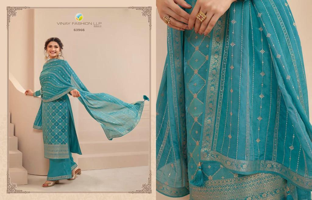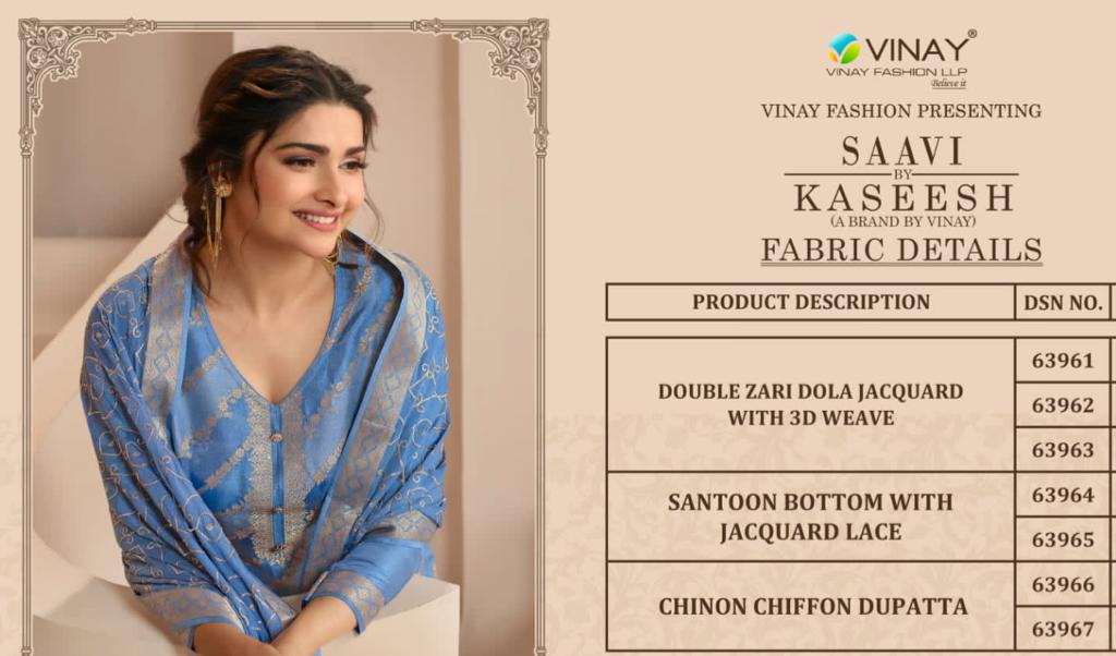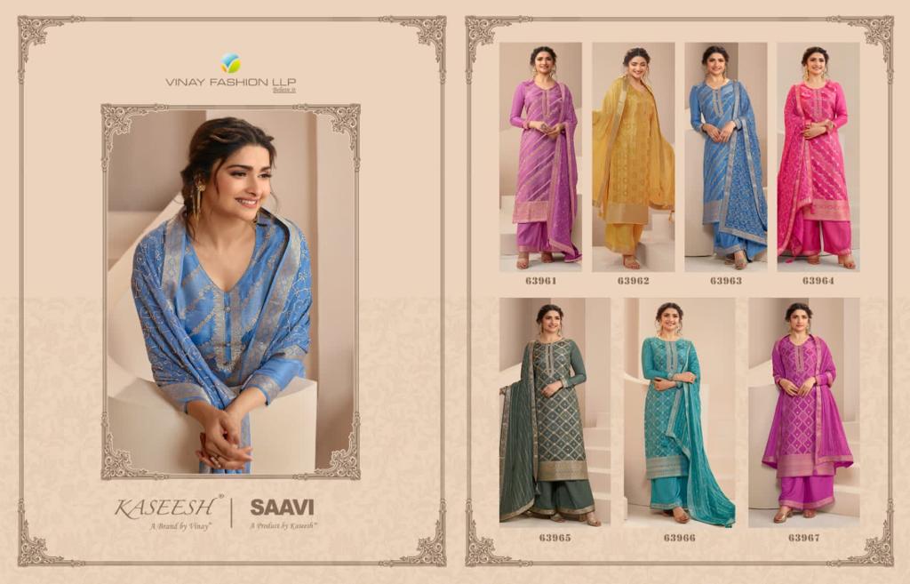 Buy Online Saavi Kaseesh By Vinay Fashion 7 Pcs of Full Catalogue at Wholesale Price. Looking for Saavi Kaseesh By Vinay Fashion Full Catalouge at Best Price? Buy Now Saavi Kaseesh By Vinay Fashion at Wholesale Rate of Rs 13650 with Total 7 Pcs from authroized dealer and supplier of Brand. Cost of Each piece is just only Rs 1950 which is very low and affordable price to resale the product in your retail store ,This is Surat based Wholesale Supplier & Dealer of Brand. Click on Brand name to Know more about Brand's products.Call or Whatsapp on 9898838984 for booking or enquiry