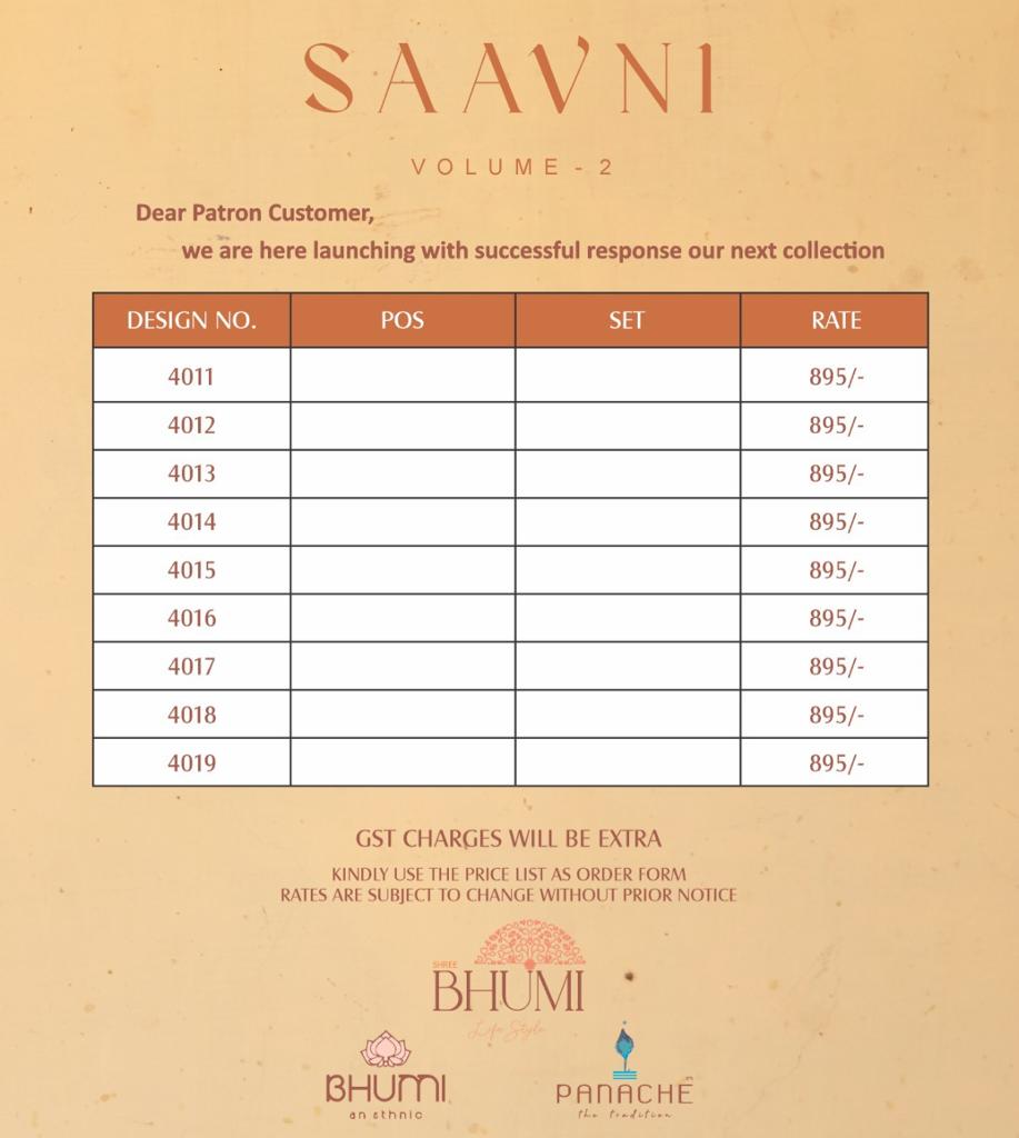 Buy Online Saavni Vol 2 By Bhumi Designer Saree Dealer From Surat 9 Pcs of Full Catalogue at Wholesale Price. Looking for Saavni Vol 2 By Bhumi Designer Saree Dealer From Surat Full Catalouge at Best Price? Buy Now Saavni Vol 2 By Bhumi Designer Saree Dealer From Surat at Wholesale Rate of Rs 8055 with Total 9 Pcs from authroized dealer and supplier of Brand. Cost of Each piece is just only Rs 895 which is very low and affordable price to resale the product in your retail store ,This is Surat based Wholesale Supplier & Dealer of Brand. Click on Brand name to Know more about Brand's products.Call or Whatsapp on 9898838984 for booking or enquiry