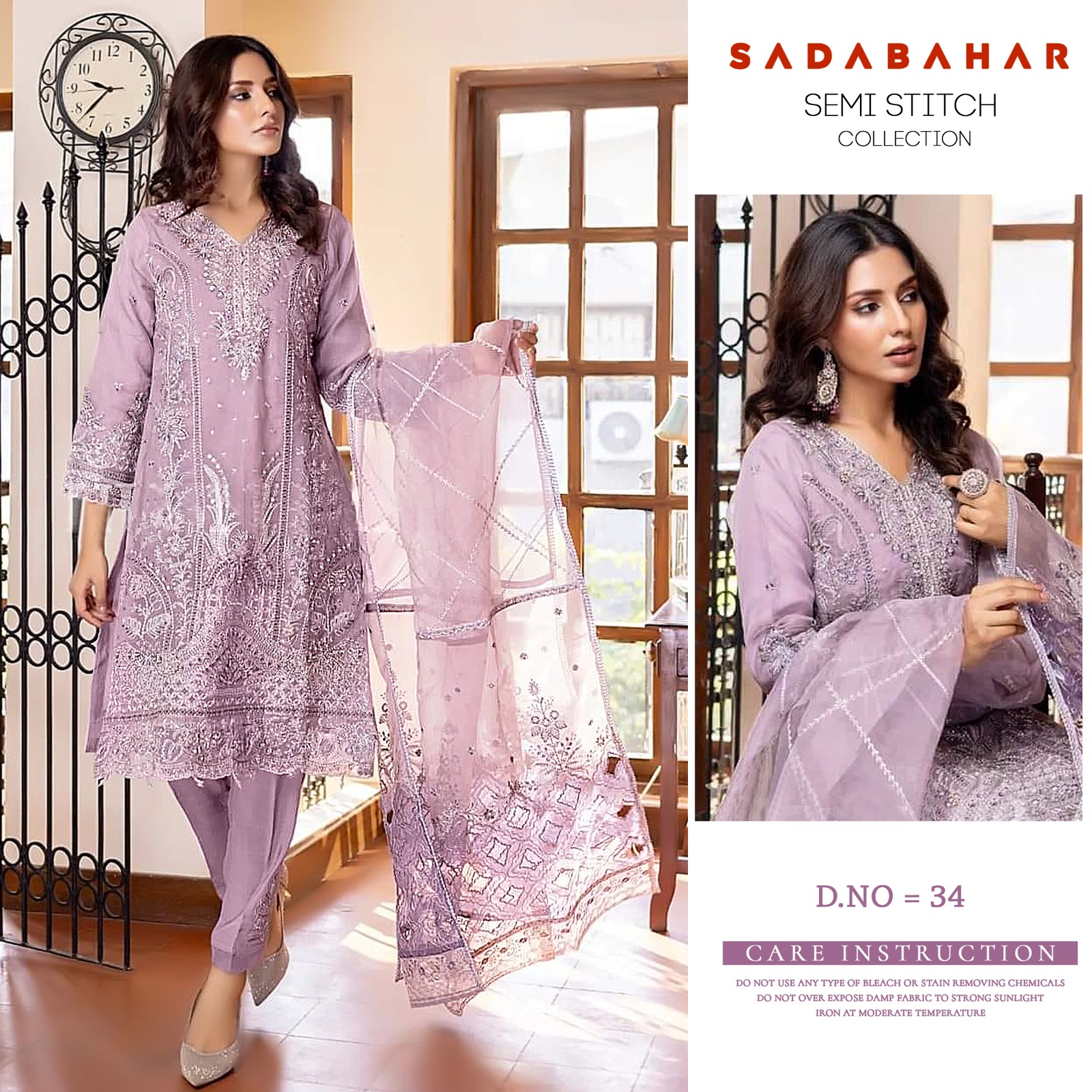 Sadabahar Design 34 Organza Semi Stitched Suits