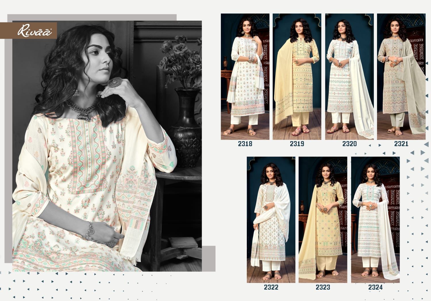 Buy Online Sadaf Vol 2 By Rivaa Wholesaler Supplier From Surat 7 Pcs of Full Catalogue at Wholesale Price. Looking for Sadaf Vol 2 By Rivaa Wholesaler Supplier From Surat Full Catalouge at Best Price? Buy Now Sadaf Vol 2 By Rivaa Wholesaler Supplier From Surat at Wholesale Rate of Rs 11130 with Total 7 Pcs from authroized dealer and supplier of Brand. Cost of Each piece is just only Rs 1590 which is very low and affordable price to resale the product in your retail store ,This is Surat based Wholesale Supplier & Dealer of Brand. Click on Brand name to Know more about Brand's products.Call or Whatsapp on 9898838984 for booking or enquiry