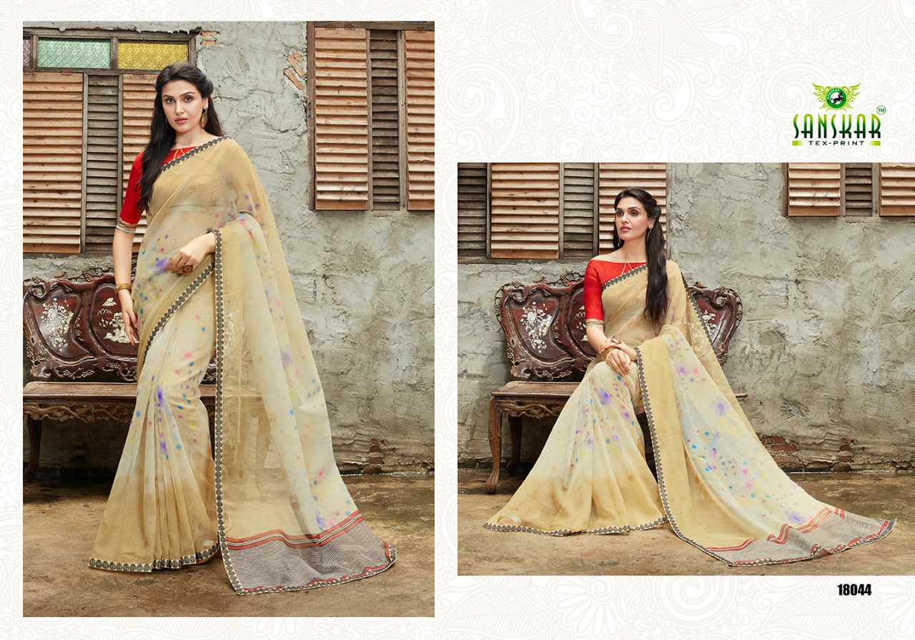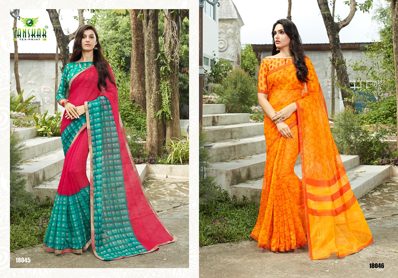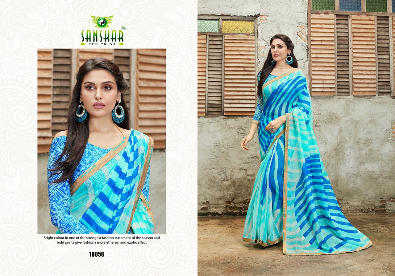 Buy Online Sadhana By Sanskar 18041 Series Fancy Printed Georgette Saree Catlog Wholesaler Surat 18 Pcs of Full Catalogue at Wholesale Price. Looking for Sadhana By Sanskar 18041 Series Fancy Printed Georgette Saree Catlog Wholesaler Surat Full Catalouge at Best Price? Buy Now Sadhana By Sanskar 18041 Series Fancy Printed Georgette Saree Catlog Wholesaler Surat at Wholesale Rate of Rs 13500 with Total 18 Pcs from authroized dealer and supplier of SANSKAR Brand. Cost of Each piece is just only Rs 750 which is very low and affordable price to resale the product in your retail store ,This is Surat based Wholesale Supplier & Dealer of SANSKAR Brand. Click on Brand name to Know more about SANSKAR Brand's products.Call or Whatsapp on 9898838984 for booking or enquiry