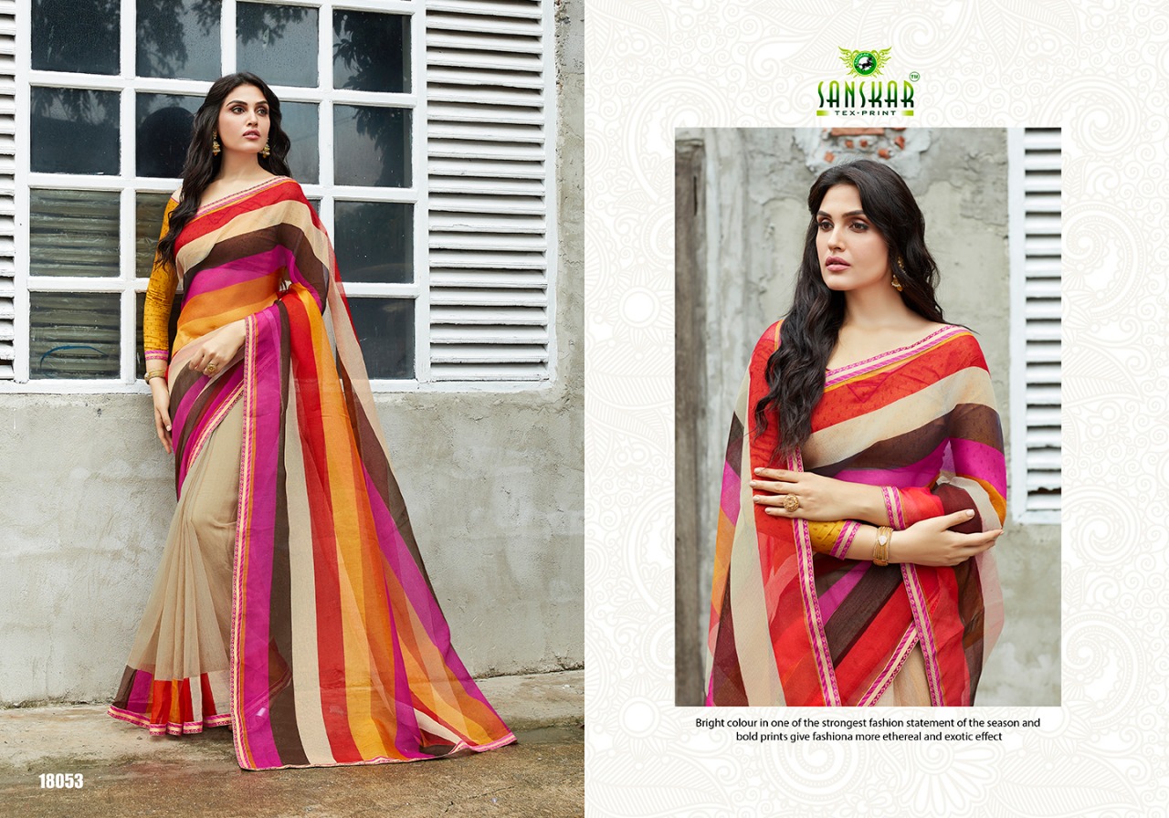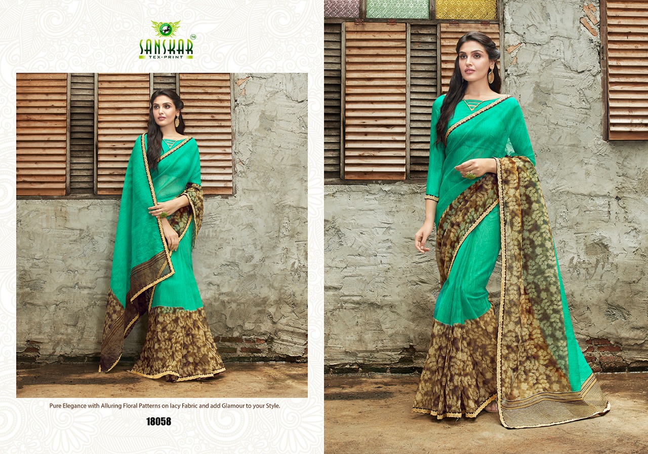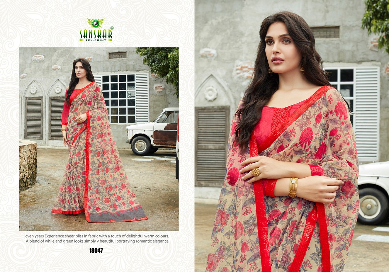 Buy Online Sadhana By Sanskar 18041 Series Fancy Printed Georgette Saree Catlog Wholesaler Surat 18 Pcs of Full Catalogue at Wholesale Price. Looking for Sadhana By Sanskar 18041 Series Fancy Printed Georgette Saree Catlog Wholesaler Surat Full Catalouge at Best Price? Buy Now Sadhana By Sanskar 18041 Series Fancy Printed Georgette Saree Catlog Wholesaler Surat at Wholesale Rate of Rs 13500 with Total 18 Pcs from authroized dealer and supplier of SANSKAR Brand. Cost of Each piece is just only Rs 750 which is very low and affordable price to resale the product in your retail store ,This is Surat based Wholesale Supplier & Dealer of SANSKAR Brand. Click on Brand name to Know more about SANSKAR Brand's products.Call or Whatsapp on 9898838984 for booking or enquiry