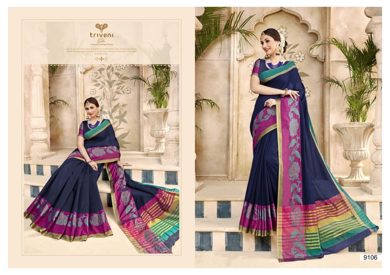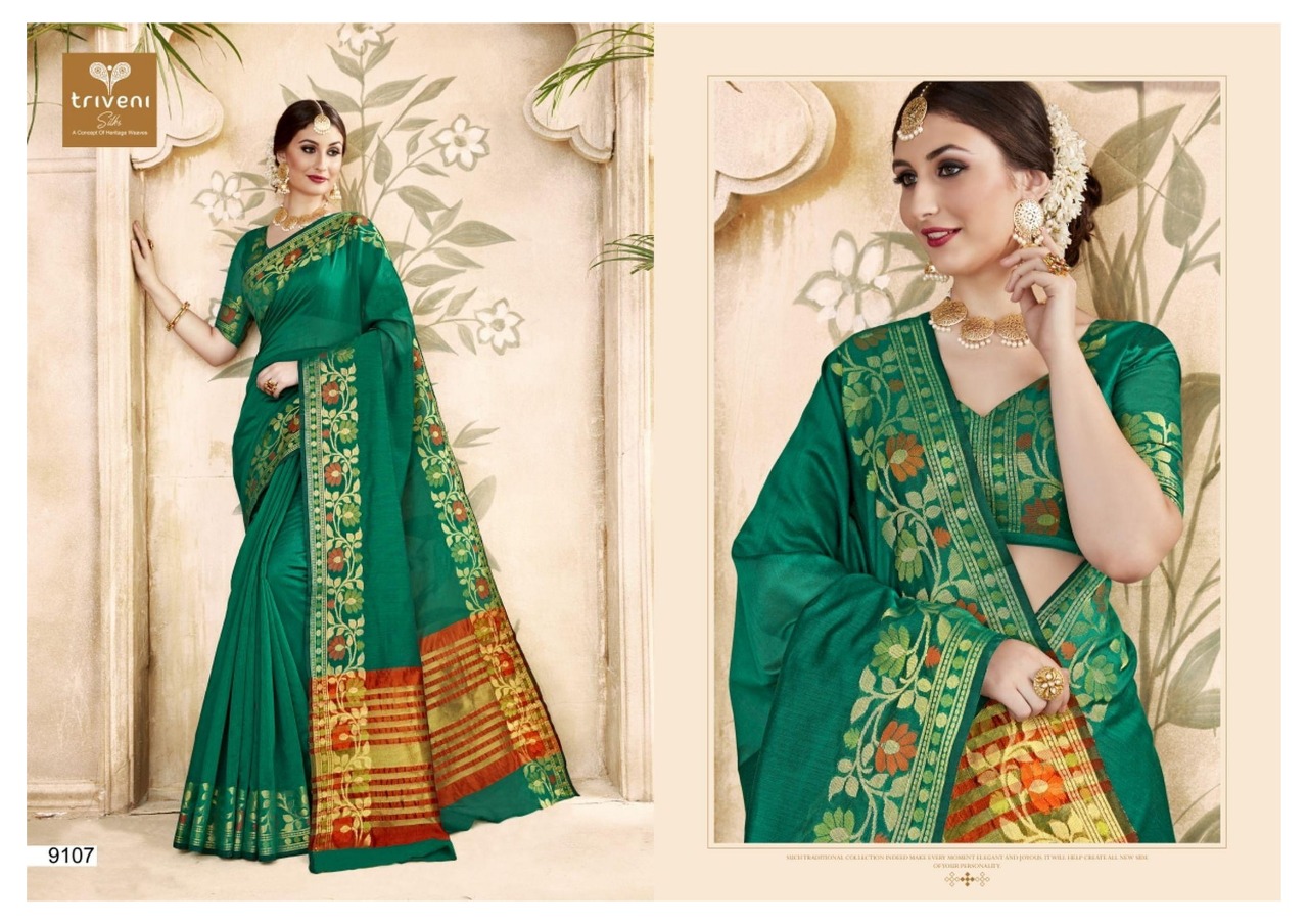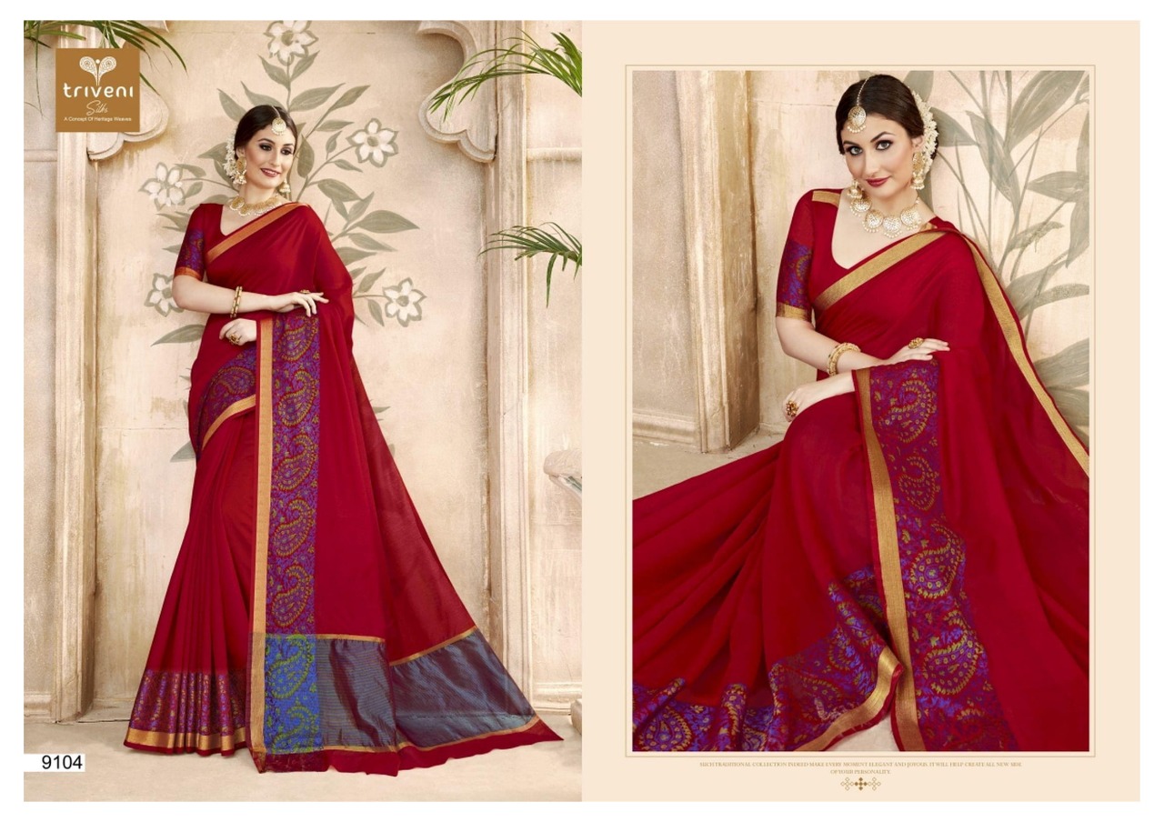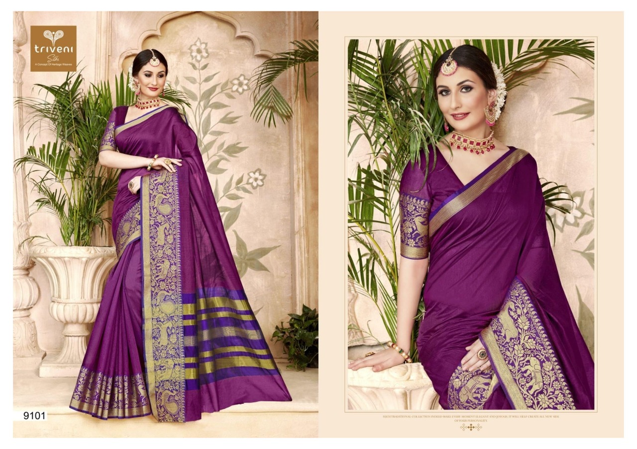 Buy Online Sadhika By Triveni 9101 Series Fancy Designer Traditional Weaving Silk Saree Collection Wholesaler Surat 8 Pcs of Full Catalogue at Wholesale Price. Looking for Sadhika By Triveni 9101 Series Fancy Designer Traditional Weaving Silk Saree Collection Wholesaler Surat Full Catalouge at Best Price? Buy Now Sadhika By Triveni 9101 Series Fancy Designer Traditional Weaving Silk Saree Collection Wholesaler Surat at Wholesale Rate of Rs 4728 with Total 8 Pcs from authroized dealer and supplier of TRIVENI Brand. Cost of Each piece is just only Rs 591 which is very low and affordable price to resale the product in your retail store ,This is Surat based Wholesale Supplier & Dealer of TRIVENI Brand. Click on Brand name to Know more about TRIVENI Brand's products.Call or Whatsapp on 9898838984 for booking or enquiry