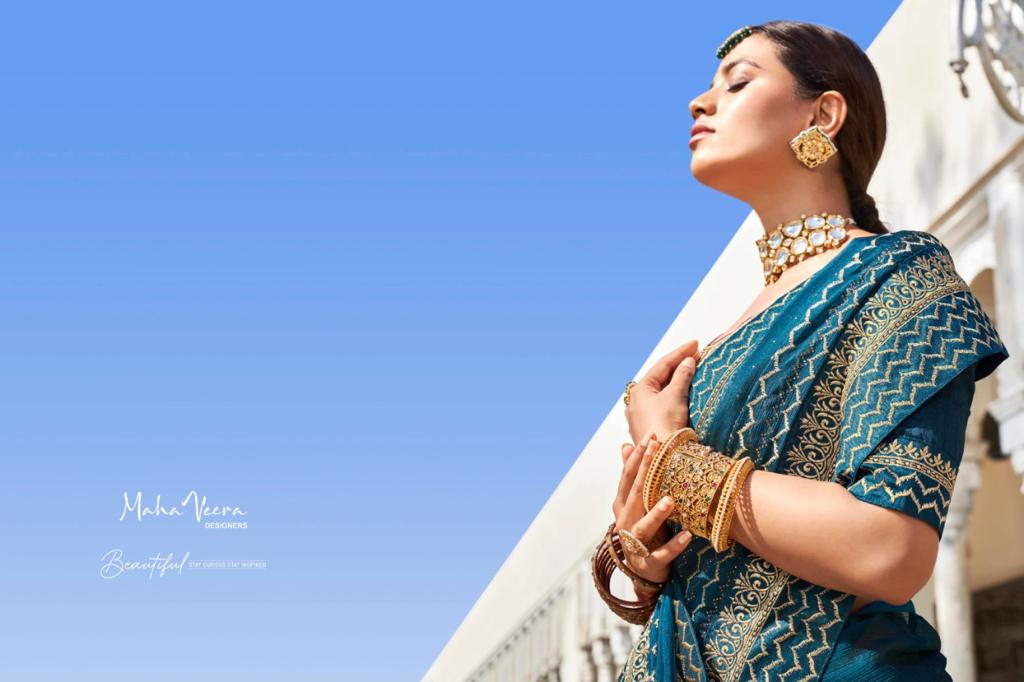 Brand - Mahaveera Trednz. Catlog name - Sadhna Sadhana catalogue Jari work with Sworaski Heavy blouse Price - 1235? per pcs Gst ship extra SINGLE AVAILABLE 100+Singles |
