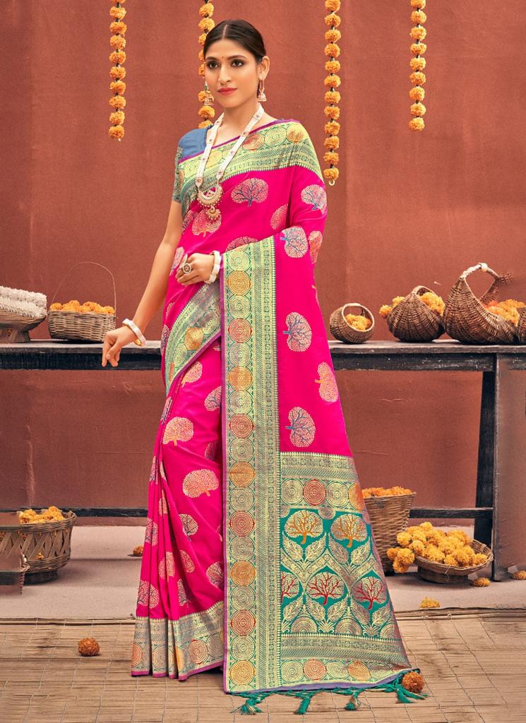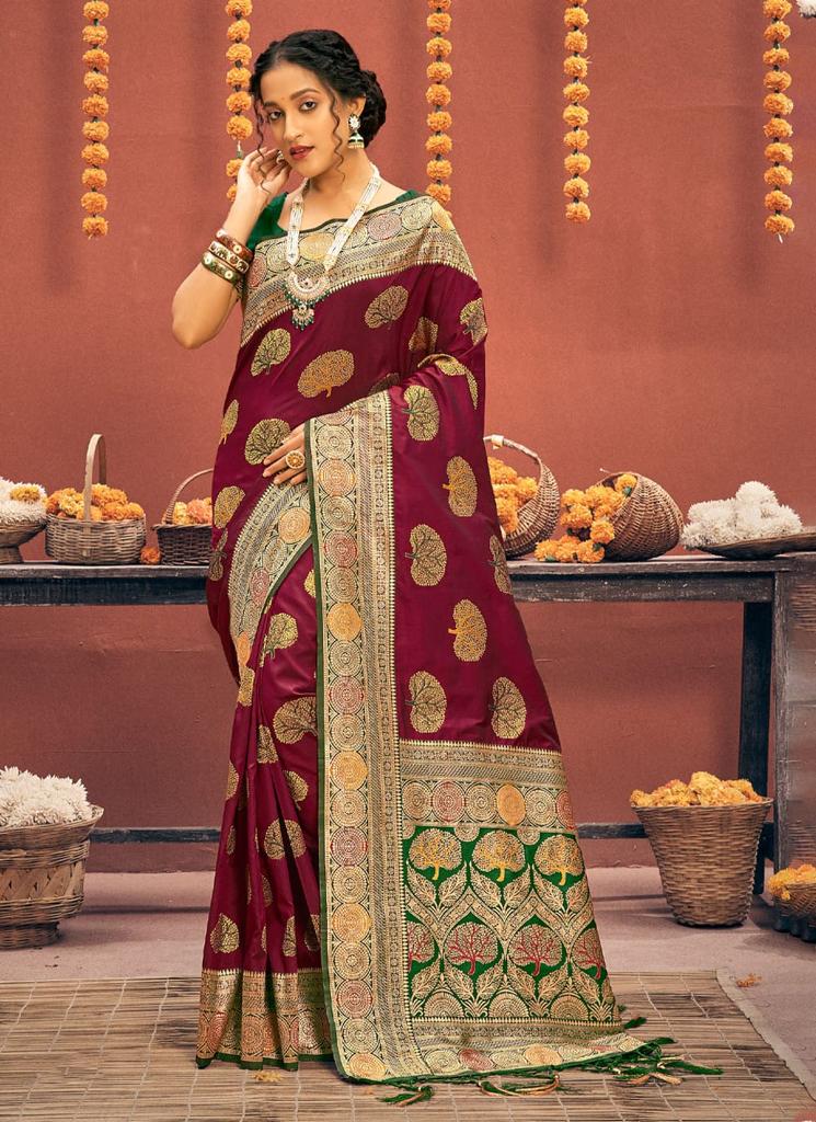 *New Catalog Exclusively Launching* Catalog Name: *Sadhna Silk* Brand: *Sangam Prints* Product Type: Saree Fabric: Banarasi Silk Price Per Piece: 1780/- Gst Extra: 5% Work: Woven Work Other Specifications: Tassels on Pallu Saree Mtr: 5.5 Mtr Blouse: 0.8 Mtr Total Pcs: 6 _*Book your orders now*_ 100+singl |