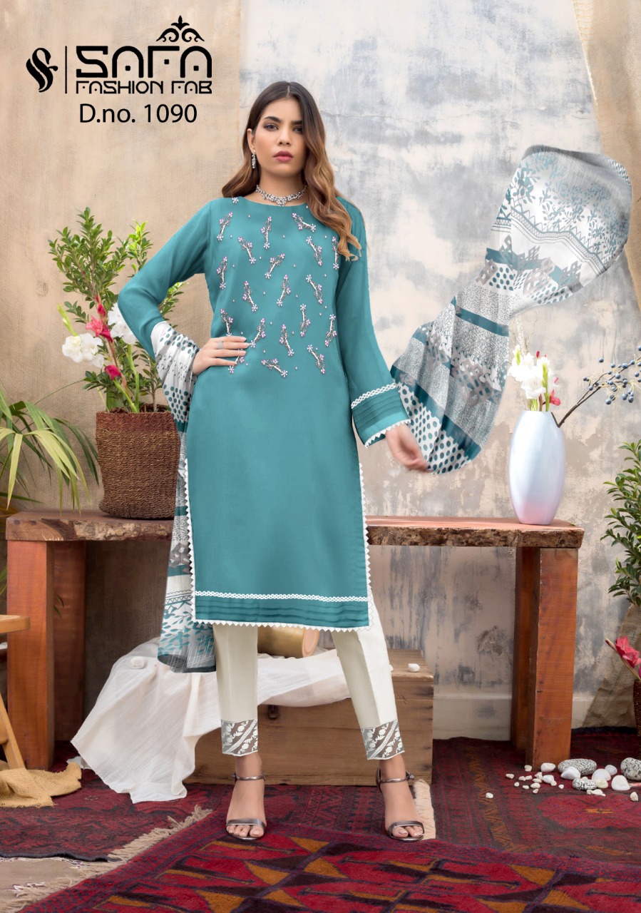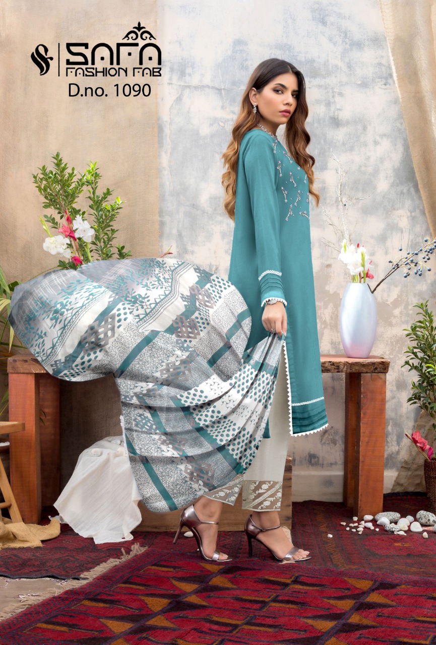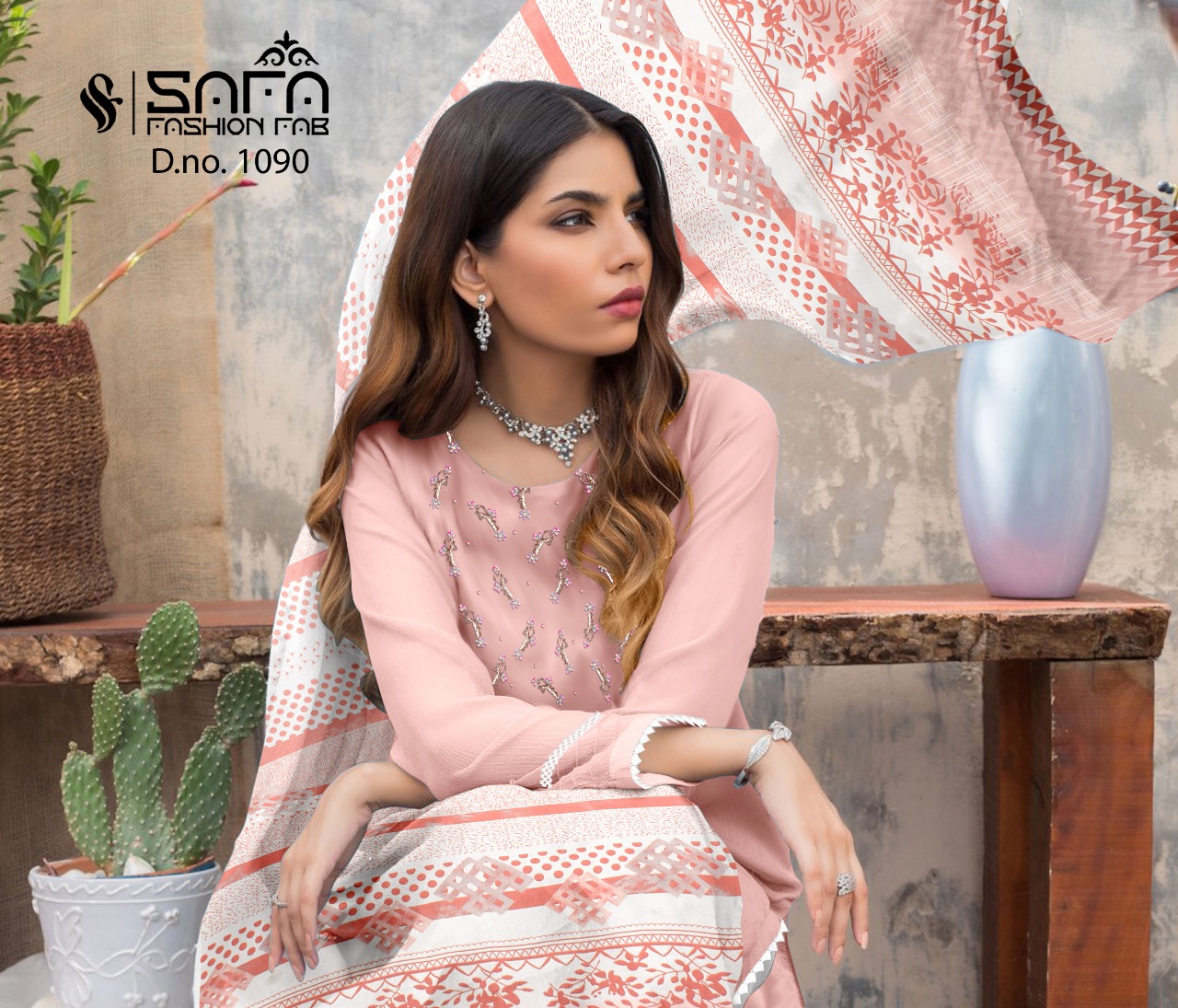 Buy Online Safa Fashion Fab D No 1090 Laxury Pret Formal Wear Collection Top Bottom Duppata 4 Pcs of Full Catalogue at Wholesale Price. Looking for Safa Fashion Fab D No 1090 Laxury Pret Formal Wear Collection Top Bottom Duppata Full Catalouge at Best Price? Buy Now Safa Fashion Fab D No 1090 Laxury Pret Formal Wear Collection Top Bottom Duppata at Wholesale Rate of Rs 5196 with Total 4 Pcs from authroized dealer and supplier of Brand. Cost of Each piece is just only Rs 1299 which is very low and affordable price to resale the product in your retail store ,This is Surat based Wholesale Supplier & Dealer of Brand. Click on Brand name to Know more about Brand's products.Call or Whatsapp on 9898838984 for booking or enquiry