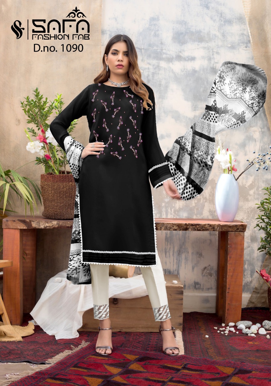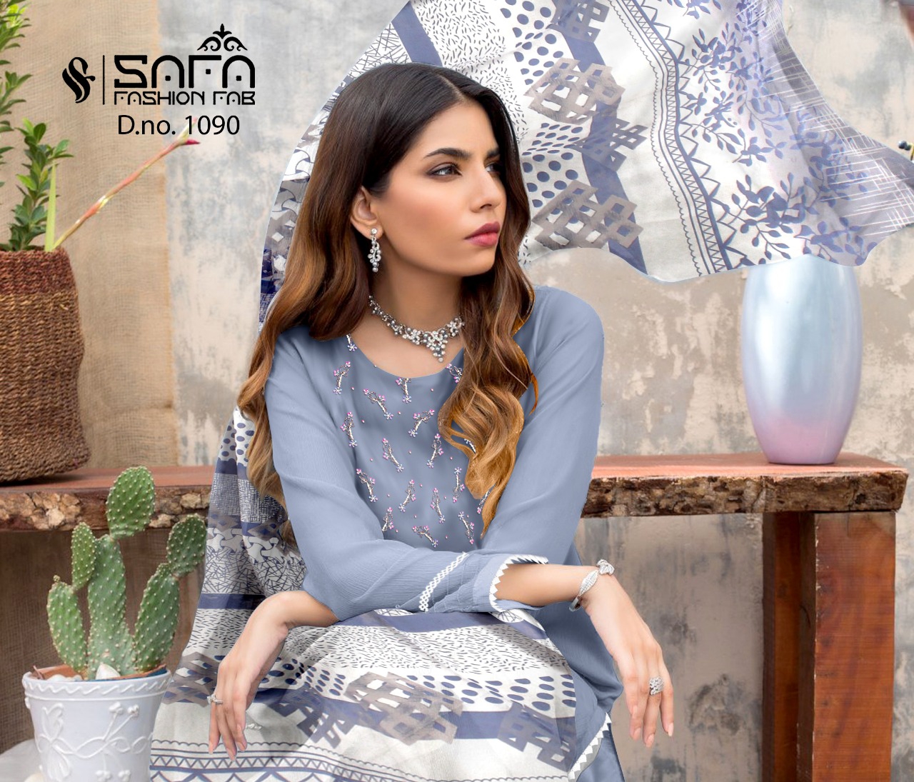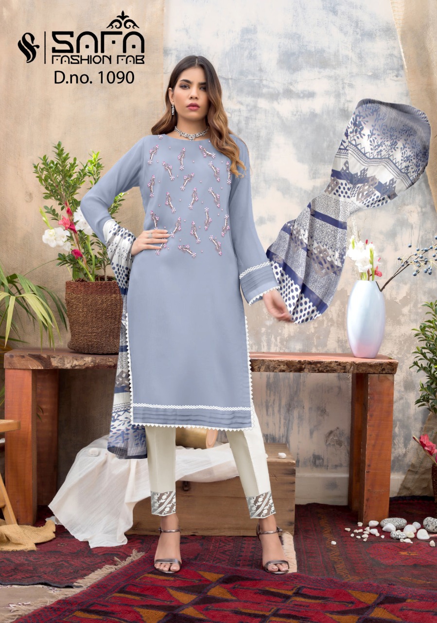 Buy Online Safa Fashion Fab D No 1090 Laxury Pret Formal Wear Collection Top Bottom Duppata 4 Pcs of Full Catalogue at Wholesale Price. Looking for Safa Fashion Fab D No 1090 Laxury Pret Formal Wear Collection Top Bottom Duppata Full Catalouge at Best Price? Buy Now Safa Fashion Fab D No 1090 Laxury Pret Formal Wear Collection Top Bottom Duppata at Wholesale Rate of Rs 5196 with Total 4 Pcs from authroized dealer and supplier of Brand. Cost of Each piece is just only Rs 1299 which is very low and affordable price to resale the product in your retail store ,This is Surat based Wholesale Supplier & Dealer of Brand. Click on Brand name to Know more about Brand's products.Call or Whatsapp on 9898838984 for booking or enquiry