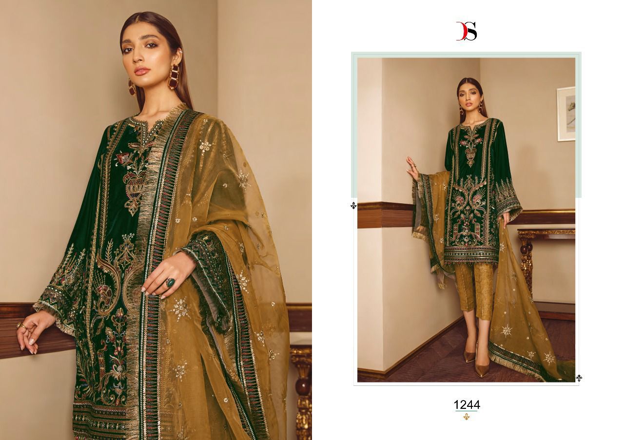 *Saffron* by DEEPSY SUITS Top - Pure velevt with embroidery Bot - Pure viscose Pasmina/ Jequard Dup - Net with embroidery/ Jequard *Rate - 1399+GST * Special pouch packing* *_Quilted Fabric Used For best quality results_* |