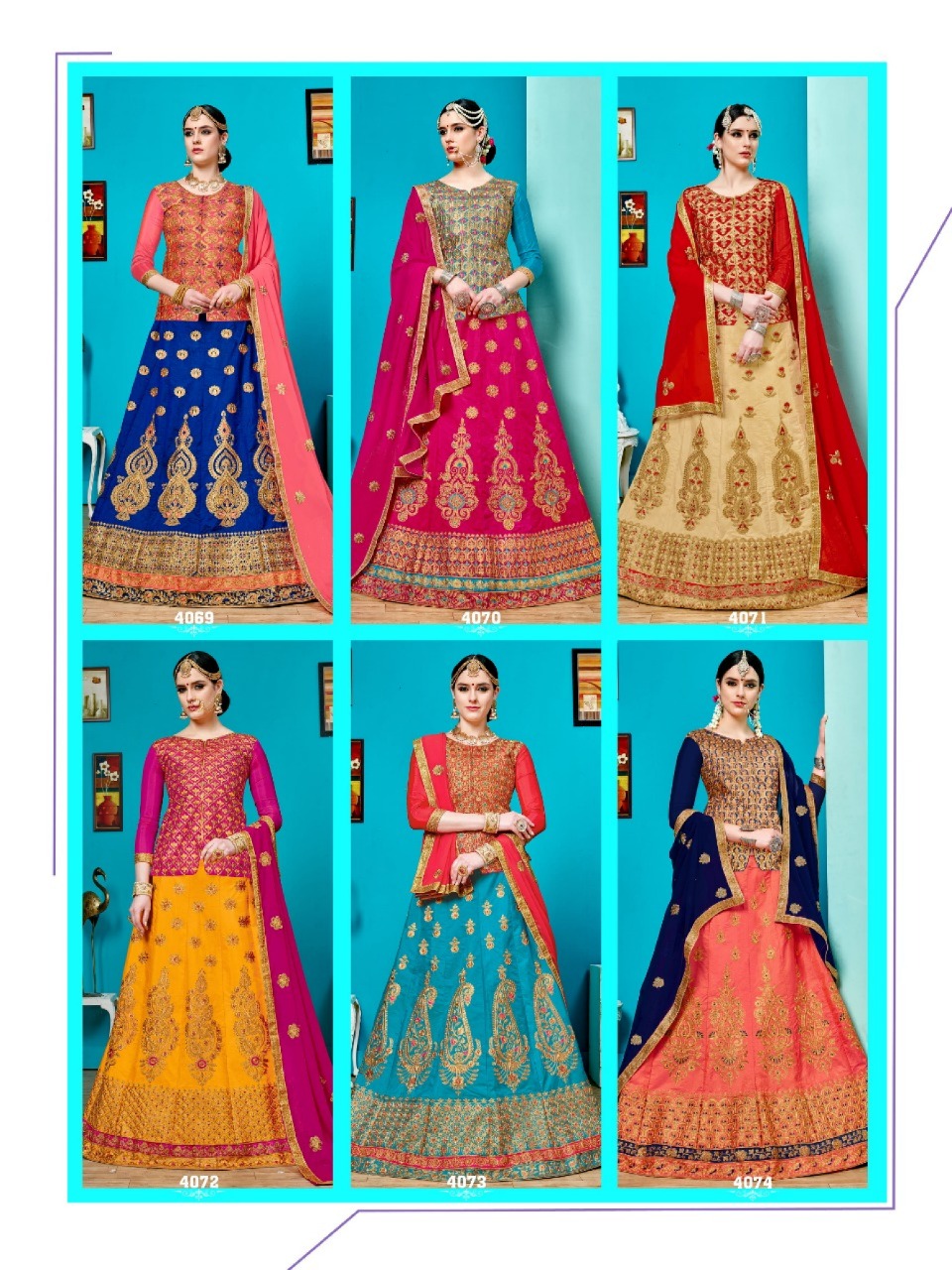 Saffron By Sanskar Style Series 4069 To 4074 Silk Designer Occasion Wear Lehngas Wholesale Supplier Gujarat