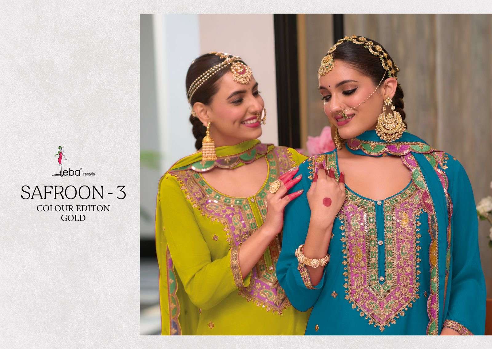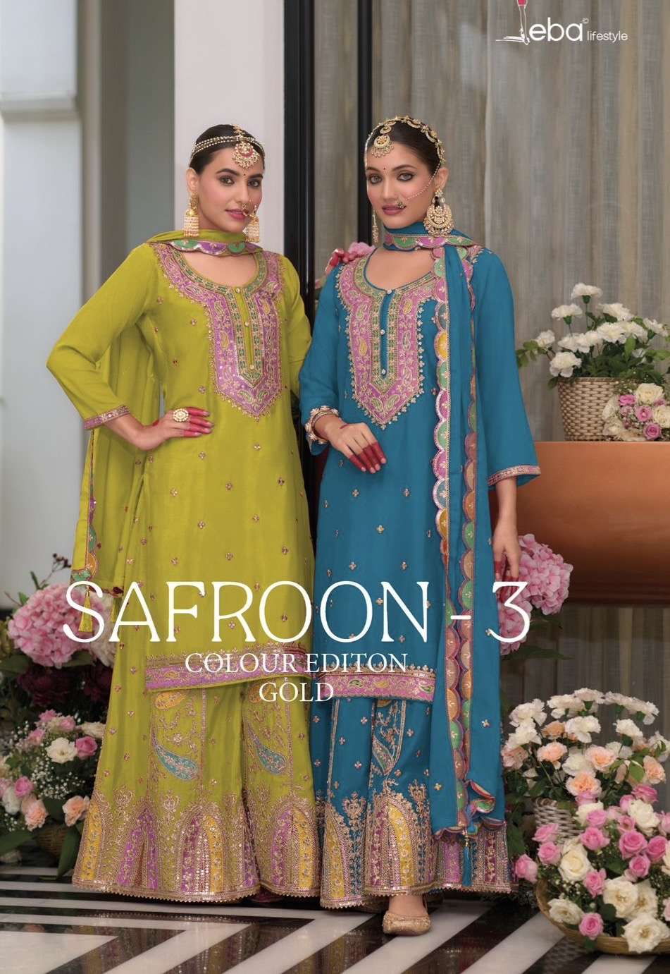 Buy Online Safroon vol 3 color adi gold by eba lifestyle plazo suit manufacturer surat 5 Pcs of Full Catalogue at Wholesale Price. Looking for Safroon vol 3 color adi gold by eba lifestyle plazo suit manufacturer surat Full Catalouge at Best Price? Buy Now Safroon vol 3 color adi gold by eba lifestyle plazo suit manufacturer surat at Wholesale Rate of Rs 11995 with Total 5 Pcs from authroized dealer and supplier of Eba Lifestyle Brand. Cost of Each piece is just only Rs 2399 which is very low and affordable price to resale the product in your retail store ,This is Surat based Wholesale Supplier & Dealer of Eba Lifestyle Brand. Click on Brand name to Know more about Eba Lifestyle Brand's products.Call or Whatsapp on 9898838984 for booking or enquiry