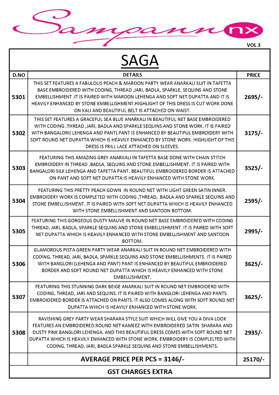 Saga By Sampann 5300 Series Single And Set Available Wholesaler Supplier From Surat