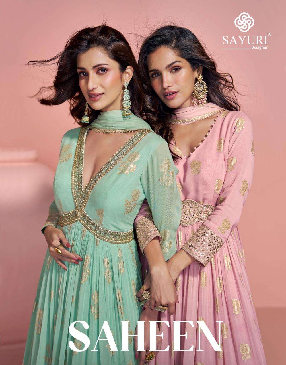 Buy Online SAHEEN by SAYURI DESIGNER JACQUARD SILK Gown collection manufacturer Surat 2 Pcs of Full Catalogue at Wholesale Price. Looking for SAHEEN by SAYURI DESIGNER JACQUARD SILK Gown collection manufacturer Surat Full Catalouge at Best Price? Buy Now SAHEEN by SAYURI DESIGNER JACQUARD SILK Gown collection manufacturer Surat at Wholesale Rate of Rs 5998 with Total 2 Pcs from authroized dealer and supplier of SAYURI DESIGNER Brand. Cost of Each piece is just only Rs 2999 which is very low and affordable price to resale the product in your retail store ,This is Surat based Wholesale Supplier & Dealer of SAYURI DESIGNER Brand. Click on Brand name to Know more about SAYURI DESIGNER Brand's products.Call or Whatsapp on 9898838984 for booking or enquiry