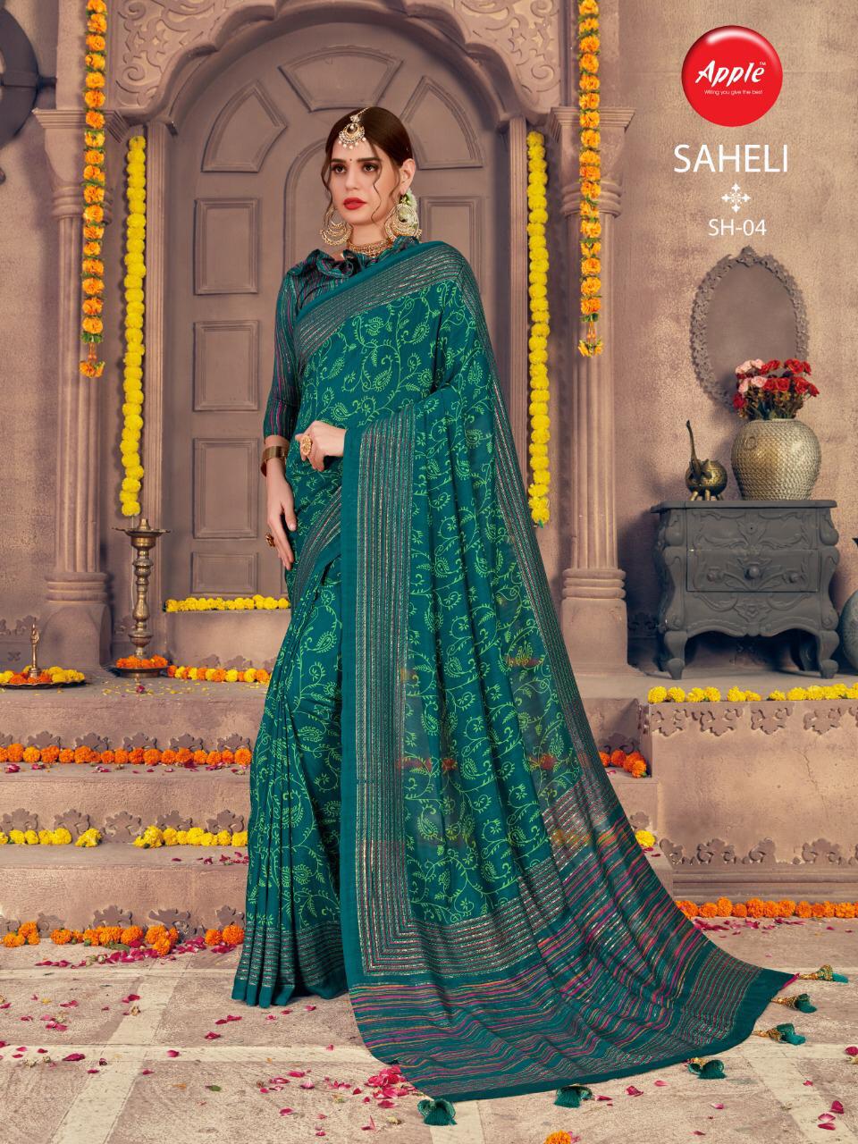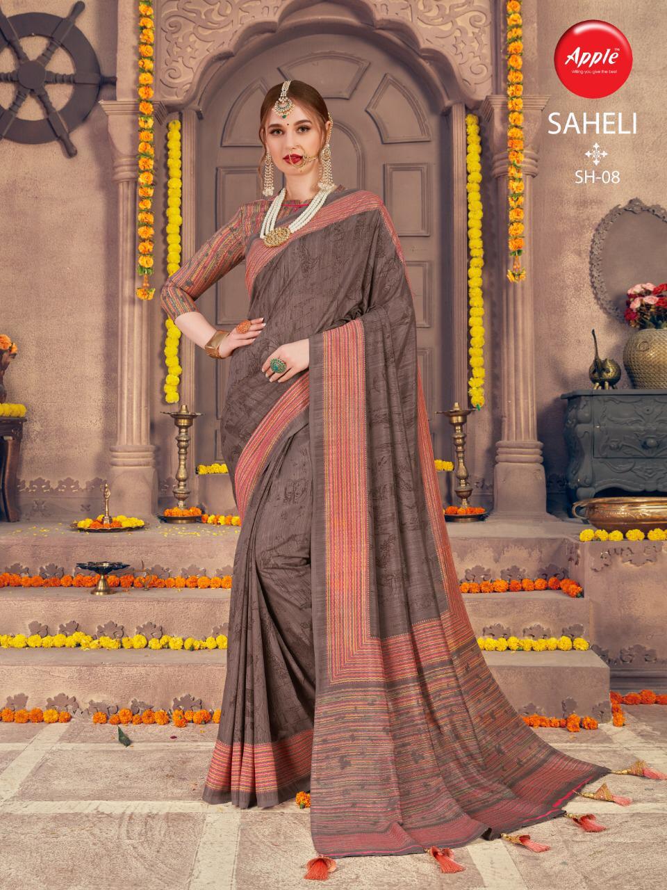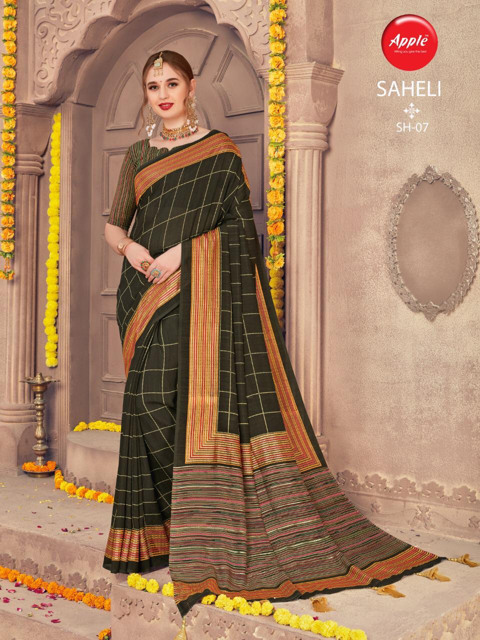 Buy Online Saheli By Apple Silk Sarees Wholesale Supplier Gujarat 8 Pcs of Full Catalogue at Wholesale Price. Looking for Saheli By Apple Silk Sarees Wholesale Supplier Gujarat Full Catalouge at Best Price? Buy Now Saheli By Apple Silk Sarees Wholesale Supplier Gujarat at Wholesale Rate of Rs 4760 with Total 8 Pcs from authroized dealer and supplier of APPLE Brand. Cost of Each piece is just only Rs 595 which is very low and affordable price to resale the product in your retail store ,This is Surat based Wholesale Supplier & Dealer of APPLE Brand. Click on Brand name to Know more about APPLE Brand's products.Call or Whatsapp on 9898838984 for booking or enquiry