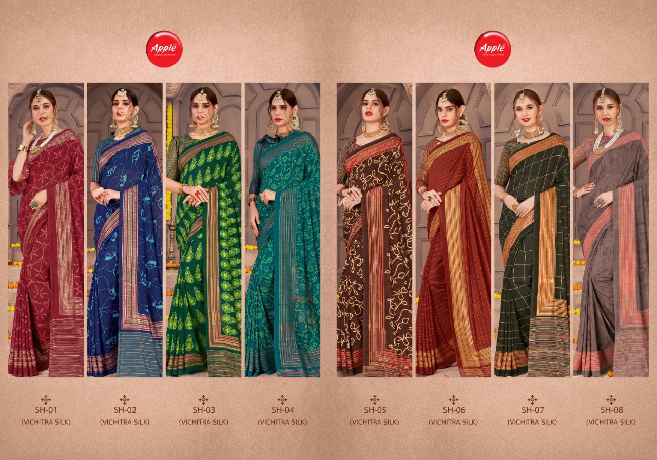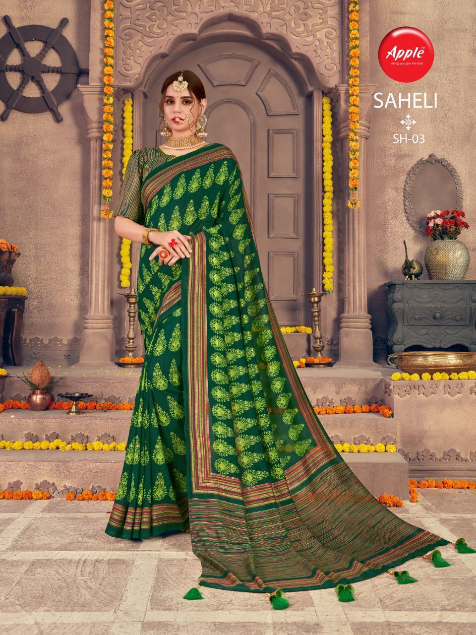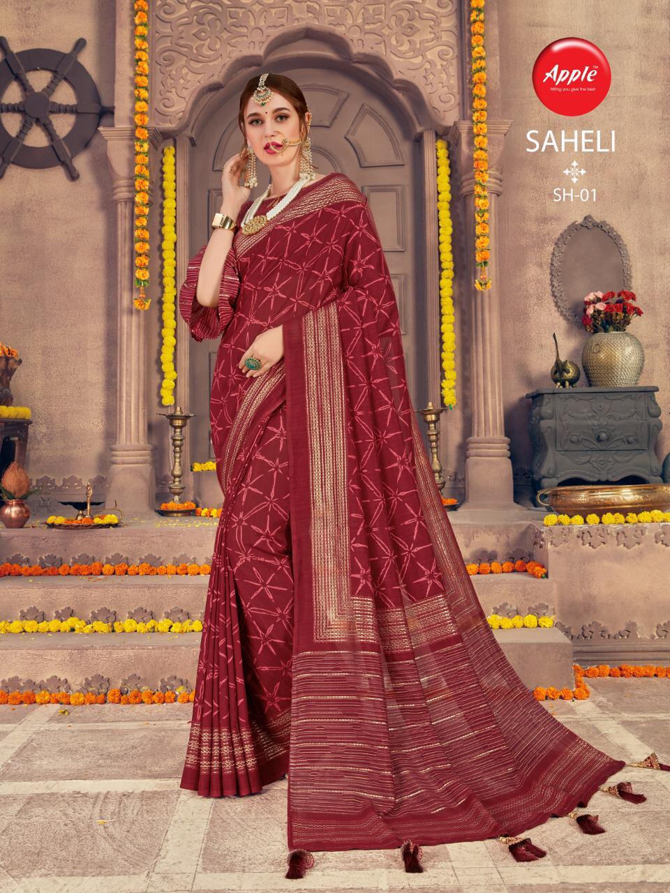 Buy Online Saheli By Apple Silk Sarees Wholesale Supplier Gujarat 8 Pcs of Full Catalogue at Wholesale Price. Looking for Saheli By Apple Silk Sarees Wholesale Supplier Gujarat Full Catalouge at Best Price? Buy Now Saheli By Apple Silk Sarees Wholesale Supplier Gujarat at Wholesale Rate of Rs 4760 with Total 8 Pcs from authroized dealer and supplier of APPLE Brand. Cost of Each piece is just only Rs 595 which is very low and affordable price to resale the product in your retail store ,This is Surat based Wholesale Supplier & Dealer of APPLE Brand. Click on Brand name to Know more about APPLE Brand's products.Call or Whatsapp on 9898838984 for booking or enquiry