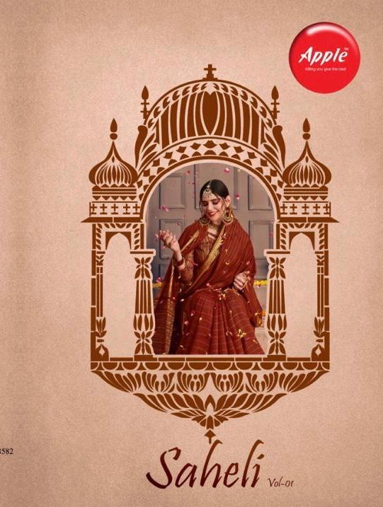 Saheli vol-1 by Apple Rate-450/- Fabrics-vichitra silk (mill foil) print 08 pcs catlogs Singal matching Set to set. GST 5 Percent Extra Delivery 3-4 days |