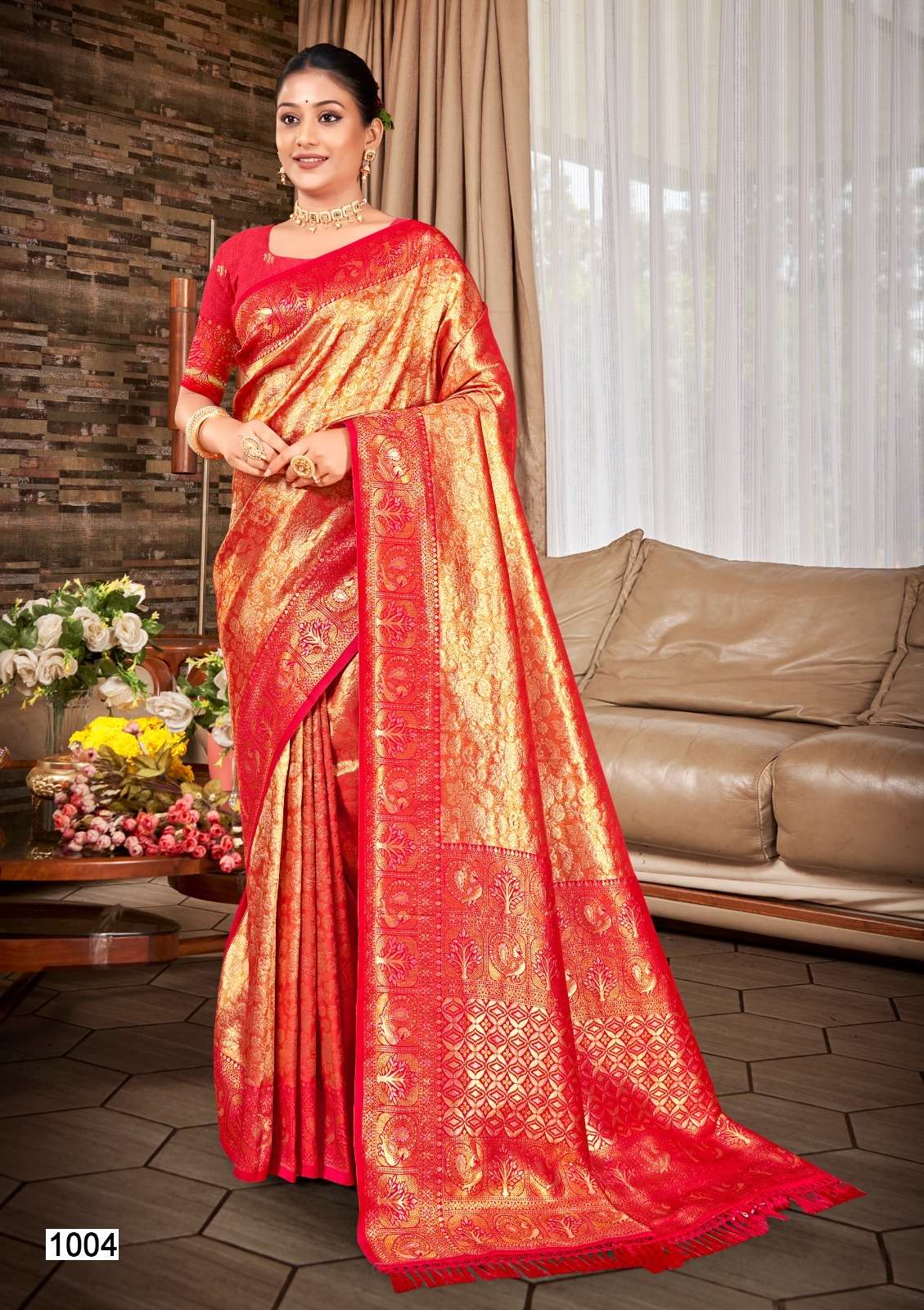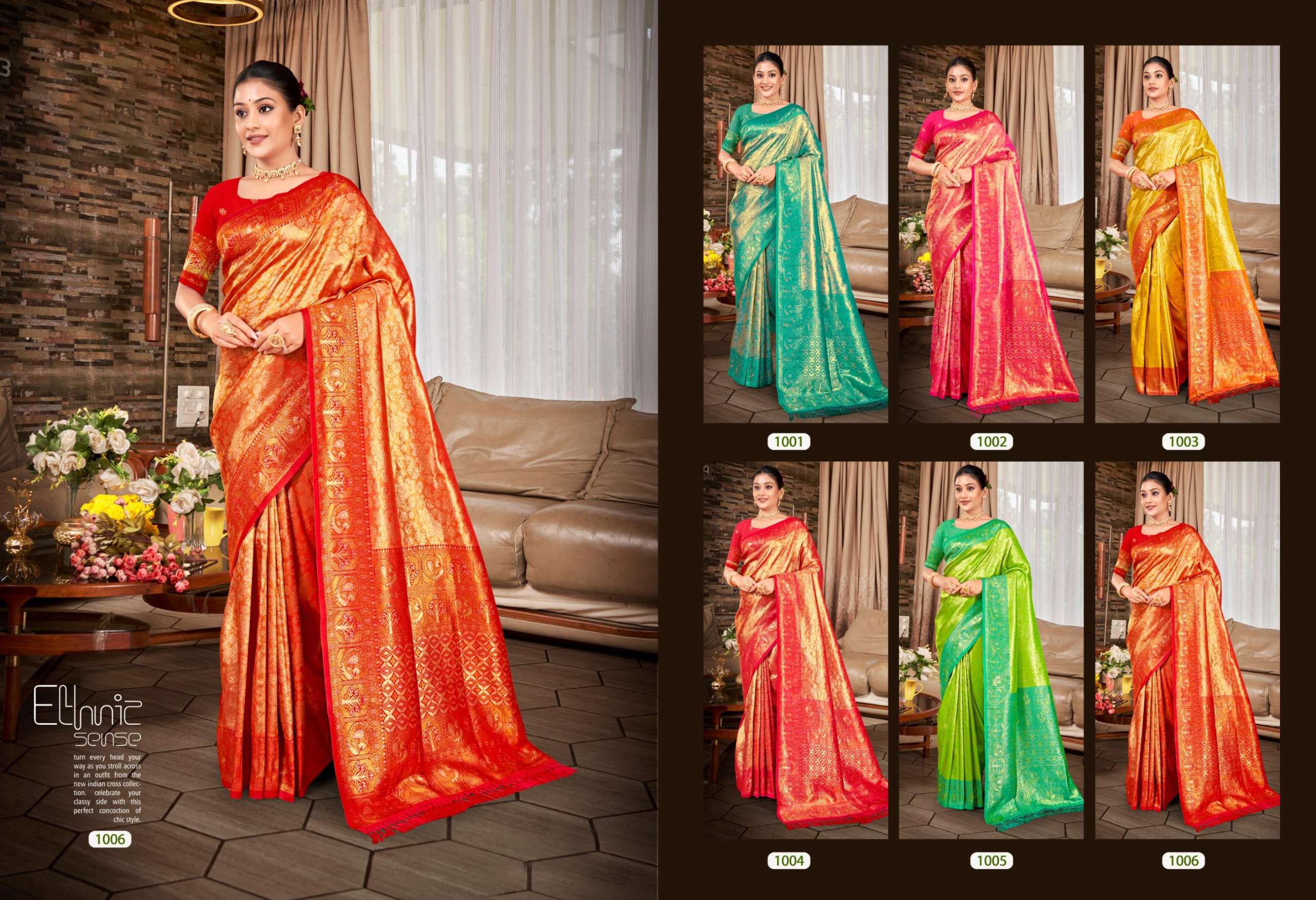 Buy Online Sahi Silk 04 Series 1001 TO 1006 by Banwa Kanjivaram Silk saree collection manufacturer Surat 6 Pcs of Full Catalogue at Wholesale Price. Looking for Sahi Silk 04 Series 1001 TO 1006 by Banwa Kanjivaram Silk saree collection manufacturer Surat Full Catalouge at Best Price? Buy Now Sahi Silk 04 Series 1001 TO 1006 by Banwa Kanjivaram Silk saree collection manufacturer Surat at Wholesale Rate of Rs 7050 with Total 6 Pcs from authroized dealer and supplier of Brand. Cost of Each piece is just only Rs 1175 which is very low and affordable price to resale the product in your retail store ,This is Surat based Wholesale Supplier & Dealer of Brand. Click on Brand name to Know more about Brand's products.Call or Whatsapp on 9898838984 for booking or enquiry