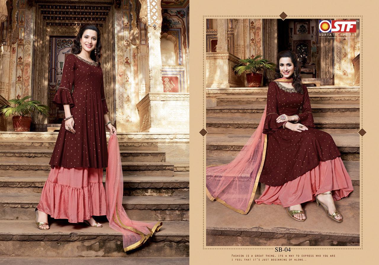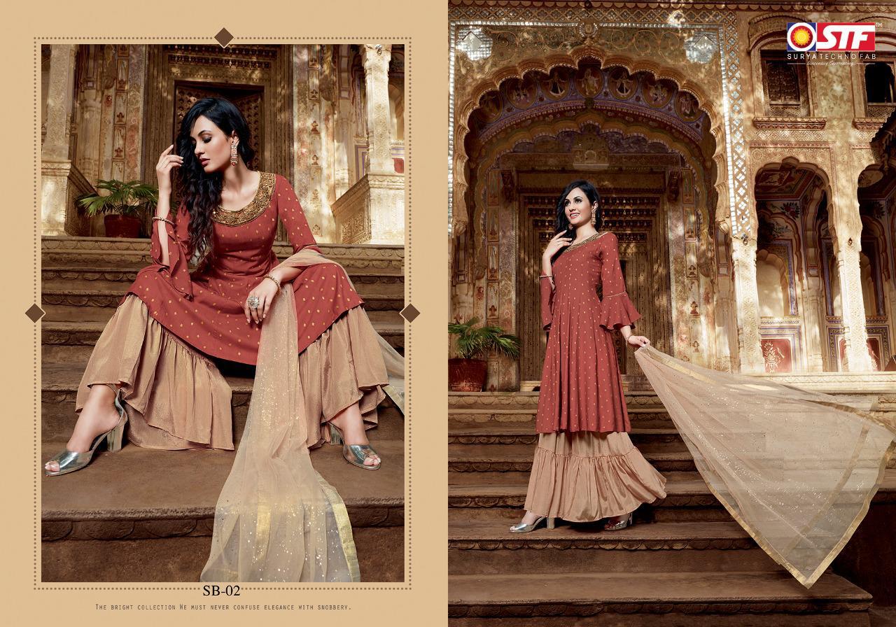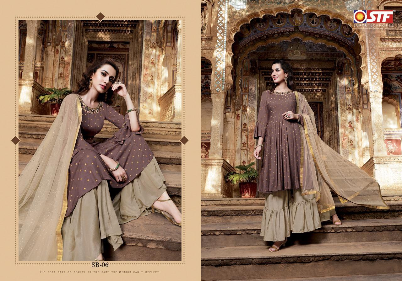 Buy Online Sahibah By Stf Designer Kurtis With Sharara Wholesale Supplier Gujarat 6 Pcs of Full Catalogue at Wholesale Price. Looking for Sahibah By Stf Designer Kurtis With Sharara Wholesale Supplier Gujarat Full Catalouge at Best Price? Buy Now Sahibah By Stf Designer Kurtis With Sharara Wholesale Supplier Gujarat at Wholesale Rate of Rs 9570 with Total 6 Pcs from authroized dealer and supplier of Brand. Cost of Each piece is just only Rs 1595 which is very low and affordable price to resale the product in your retail store ,This is Surat based Wholesale Supplier & Dealer of Brand. Click on Brand name to Know more about Brand's products.Call or Whatsapp on 9898838984 for booking or enquiry
