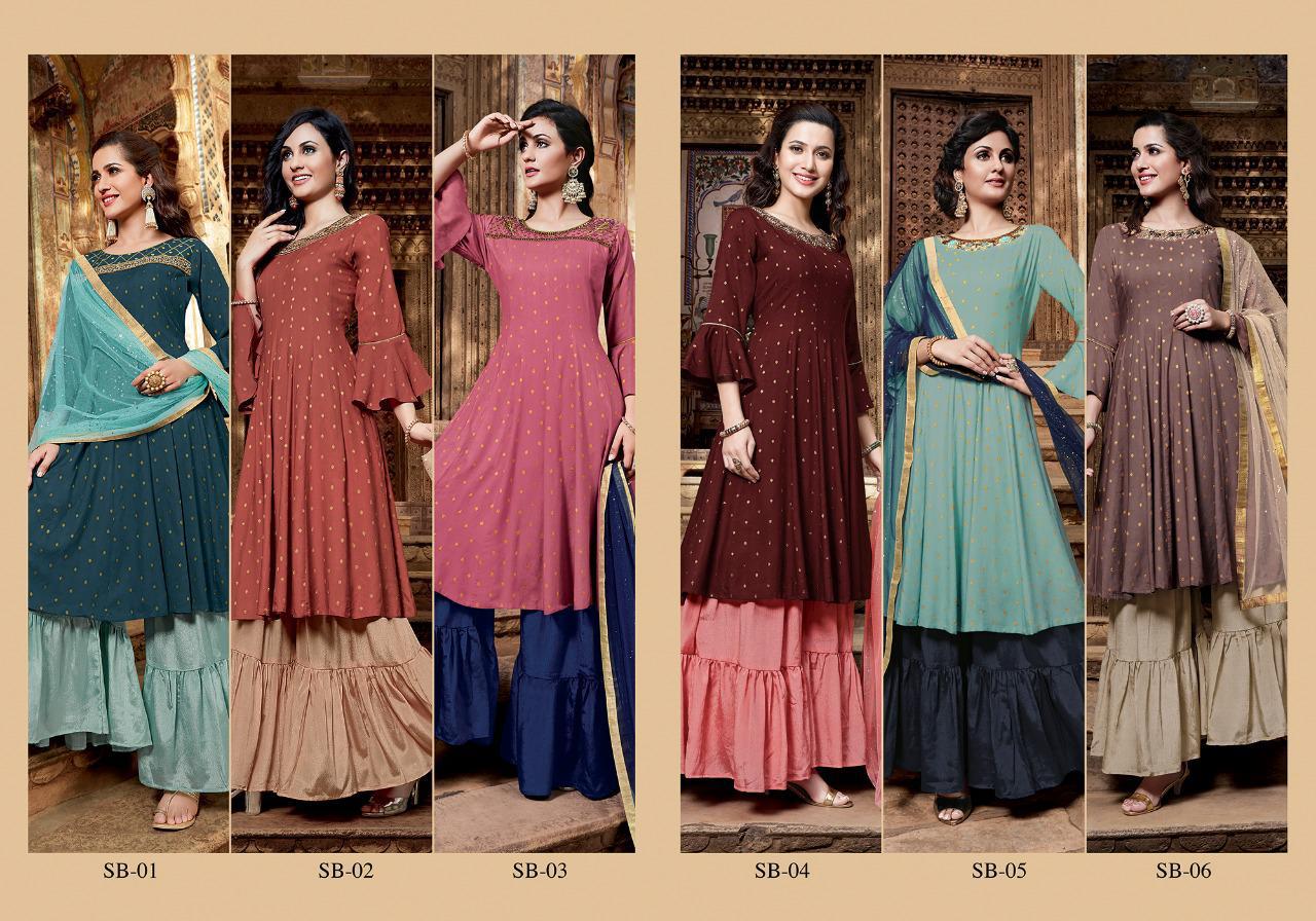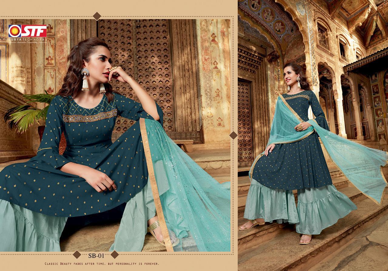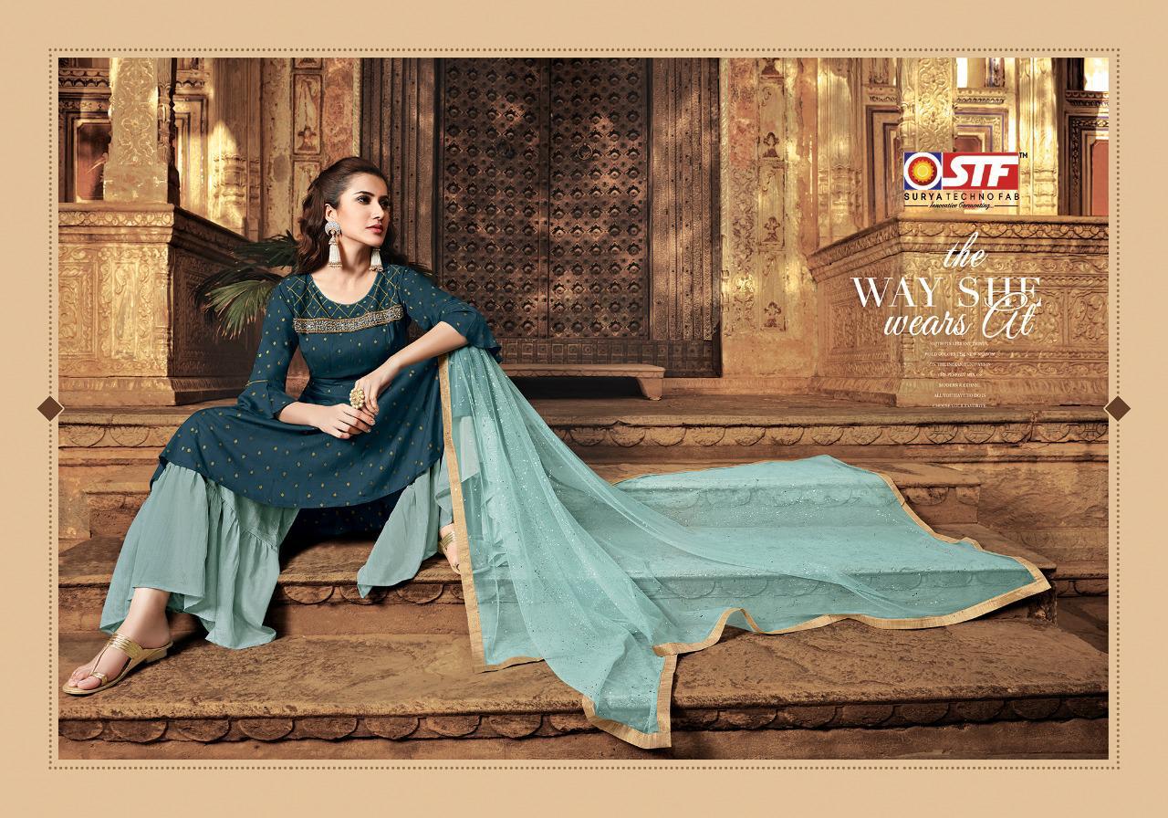 Buy Online Sahibah By Stf Designer Kurtis With Sharara Wholesale Supplier Gujarat 6 Pcs of Full Catalogue at Wholesale Price. Looking for Sahibah By Stf Designer Kurtis With Sharara Wholesale Supplier Gujarat Full Catalouge at Best Price? Buy Now Sahibah By Stf Designer Kurtis With Sharara Wholesale Supplier Gujarat at Wholesale Rate of Rs 9570 with Total 6 Pcs from authroized dealer and supplier of Brand. Cost of Each piece is just only Rs 1595 which is very low and affordable price to resale the product in your retail store ,This is Surat based Wholesale Supplier & Dealer of Brand. Click on Brand name to Know more about Brand's products.Call or Whatsapp on 9898838984 for booking or enquiry