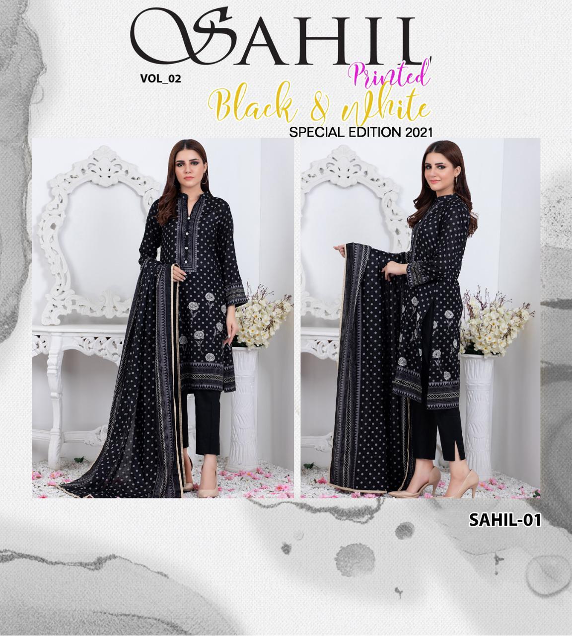 Sahil Printed Lawn Vol 2 Black And White Special Edition 2021 By Zs Textile Wholesaler Supplier From Surat