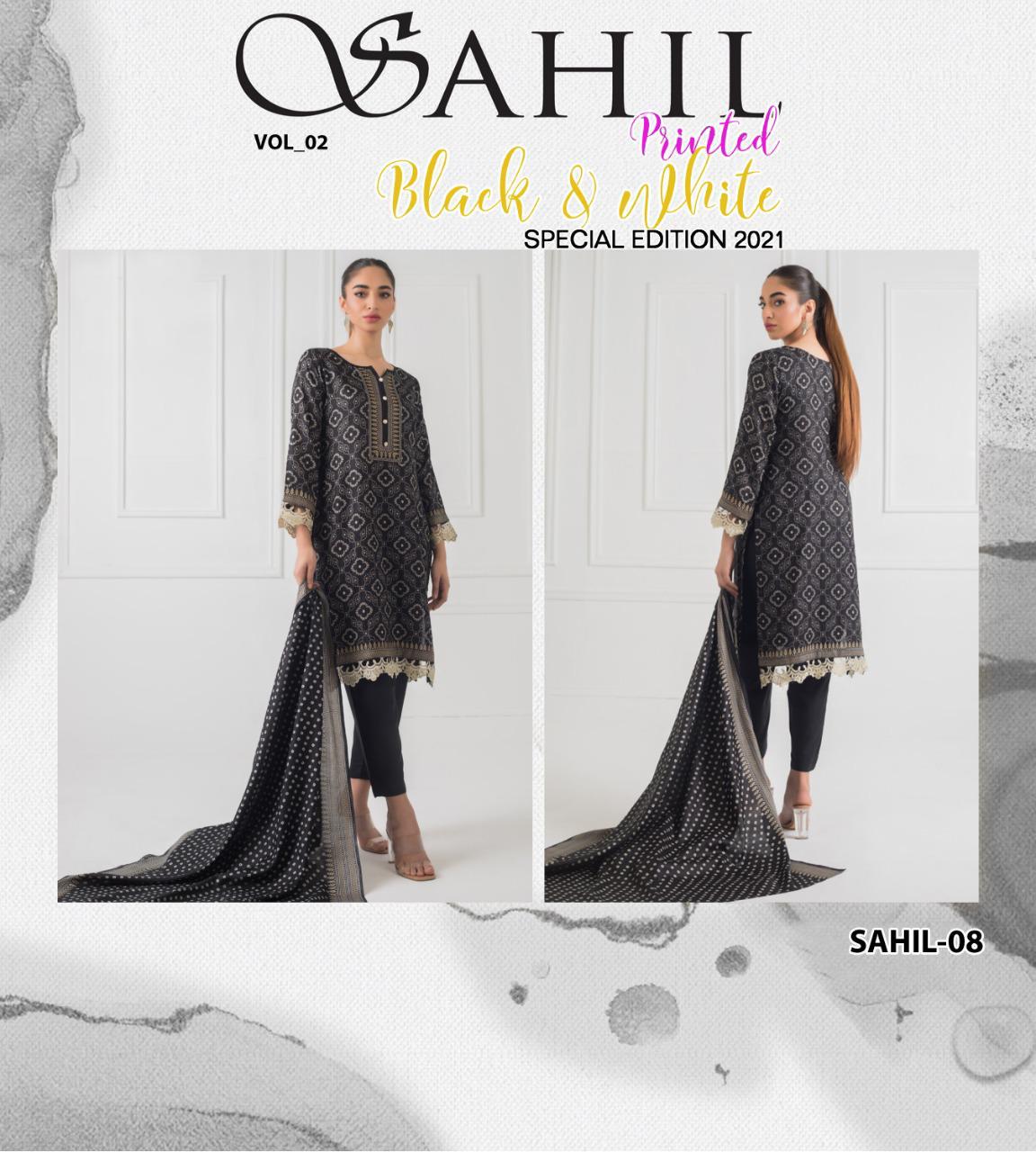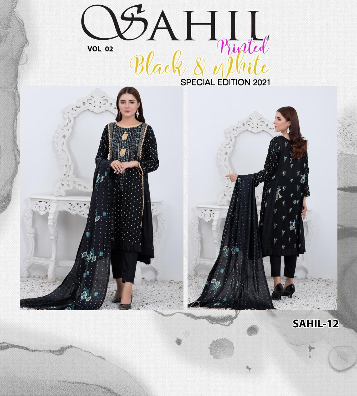 Buy Online Sahil Printed Lawn Vol 2 Black And White Special Edition 2021 By Zs Textile Wholesaler Supplier From Surat 12 Pcs of Full Catalogue at Wholesale Price. Looking for Sahil Printed Lawn Vol 2 Black And White Special Edition 2021 By Zs Textile Wholesaler Supplier From Surat Full Catalouge at Best Price? Buy Now Sahil Printed Lawn Vol 2 Black And White Special Edition 2021 By Zs Textile Wholesaler Supplier From Surat at Wholesale Rate of Rs 11988 with Total 12 Pcs from authroized dealer and supplier of Brand. Cost of Each piece is just only Rs 999 which is very low and affordable price to resale the product in your retail store ,This is Surat based Wholesale Supplier & Dealer of Brand. Click on Brand name to Know more about Brand's products.Call or Whatsapp on 9898838984 for booking or enquiry