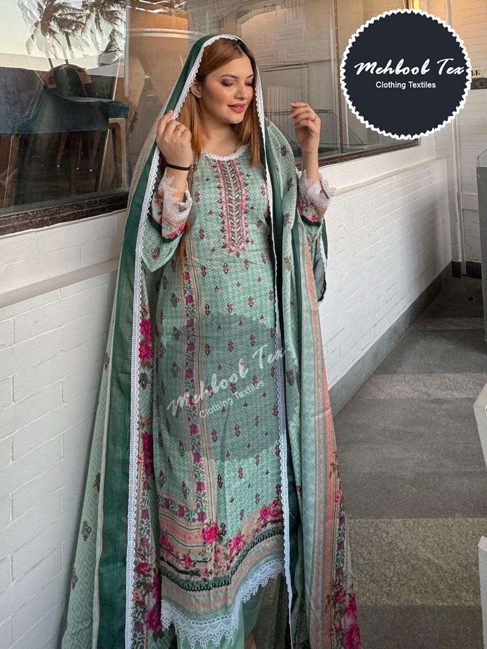 7773 1318 ABdesgin no Top - **Super WITH self embroidered BOTTOM SEMILAWN DUPPTA **COTTON****** DESIGNS 1 RATE 610 COTTON Mehbbob tex SURAT® |