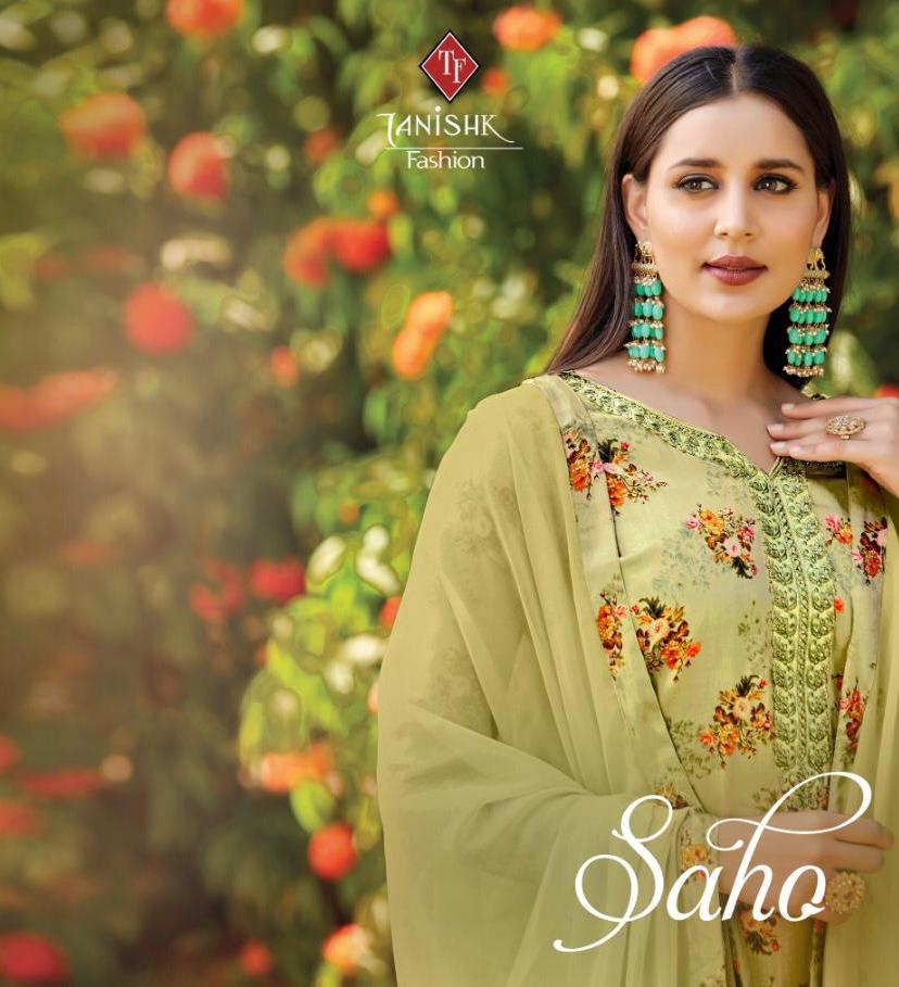 Buy Online Saho By Tanishk Fashion Jam Silk Digital Printed Suits Wholesale Supplier Gujarat 8 Pcs of Full Catalogue at Wholesale Price. Looking for Saho By Tanishk Fashion Jam Silk Digital Printed Suits Wholesale Supplier Gujarat Full Catalouge at Best Price? Buy Now Saho By Tanishk Fashion Jam Silk Digital Printed Suits Wholesale Supplier Gujarat at Wholesale Rate of Rs 6360 with Total 8 Pcs from authroized dealer and supplier of Tanishk fashion Brand. Cost of Each piece is just only Rs 795 which is very low and affordable price to resale the product in your retail store ,This is Surat based Wholesale Supplier & Dealer of Tanishk fashion Brand. Click on Brand name to Know more about Tanishk fashion Brand's products.Call or Whatsapp on 9898838984 for booking or enquiry