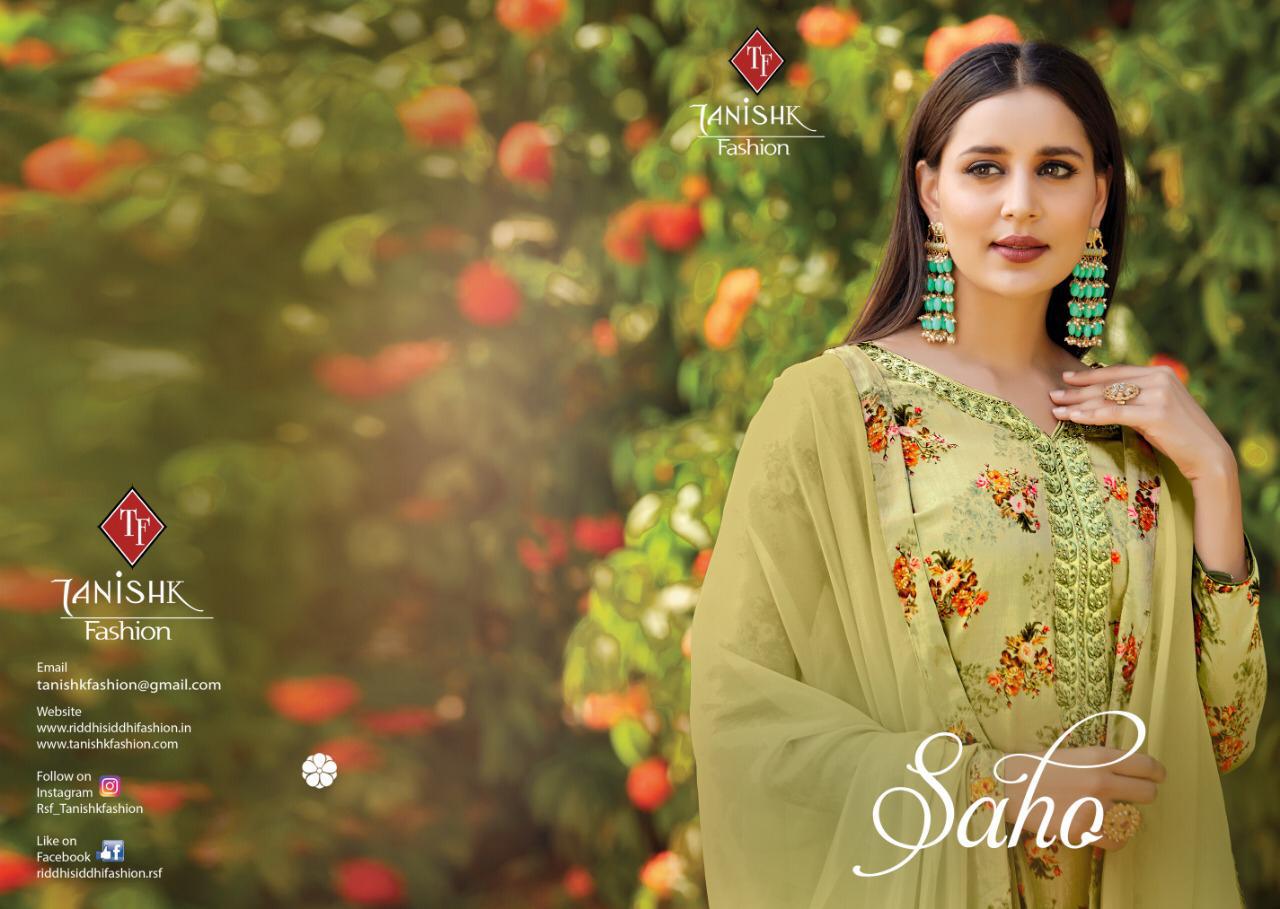 Buy Online Saho By Tanishk Fashion Surat Cotton Suits Wholesale Traders 8 Pcs of Full Catalogue at Wholesale Price. Looking for Saho By Tanishk Fashion Surat Cotton Suits Wholesale Traders Full Catalouge at Best Price? Buy Now Saho By Tanishk Fashion Surat Cotton Suits Wholesale Traders at Wholesale Rate of Rs 6360 with Total 8 Pcs from authroized dealer and supplier of Tanishk fashion Brand. Cost of Each piece is just only Rs 795 which is very low and affordable price to resale the product in your retail store ,This is Surat based Wholesale Supplier & Dealer of Tanishk fashion Brand. Click on Brand name to Know more about Tanishk fashion Brand's products.Call or Whatsapp on 9898838984 for booking or enquiry
