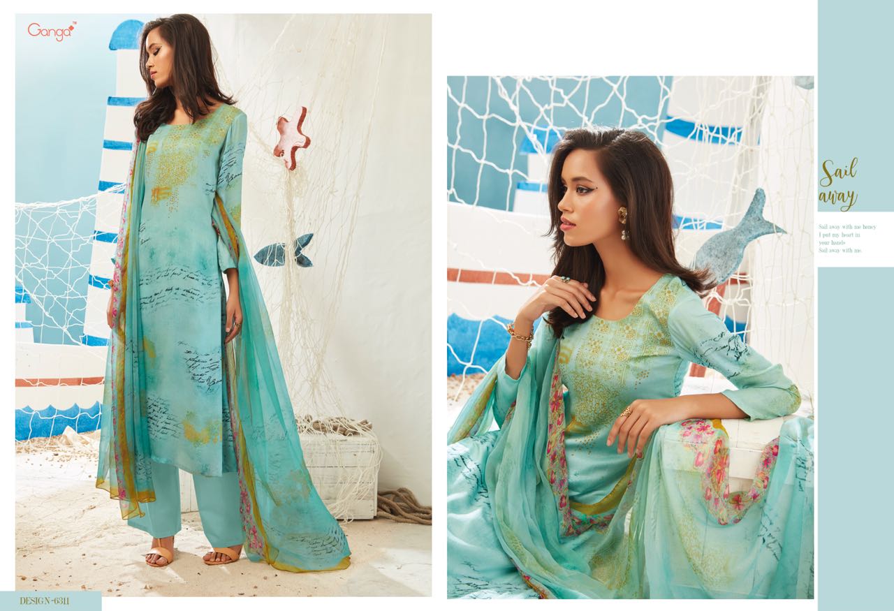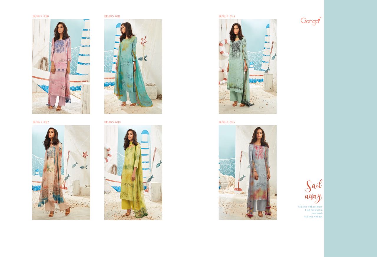 Buy Online Sail Away By Ganga Satin With Sarkosi Work Designer Party Wear Suits Wholesale Supplier And Dealer Gujarat 6 Pcs of Full Catalogue at Wholesale Price. Looking for Sail Away By Ganga Satin With Sarkosi Work Designer Party Wear Suits Wholesale Supplier And Dealer Gujarat Full Catalouge at Best Price? Buy Now Sail Away By Ganga Satin With Sarkosi Work Designer Party Wear Suits Wholesale Supplier And Dealer Gujarat at Wholesale Rate of Rs 9540 with Total 6 Pcs from authroized dealer and supplier of GANGA Brand. Cost of Each piece is just only Rs 1590 which is very low and affordable price to resale the product in your retail store ,This is Surat based Wholesale Supplier & Dealer of GANGA Brand. Click on Brand name to Know more about GANGA Brand's products.Call or Whatsapp on 9898838984 for booking or enquiry