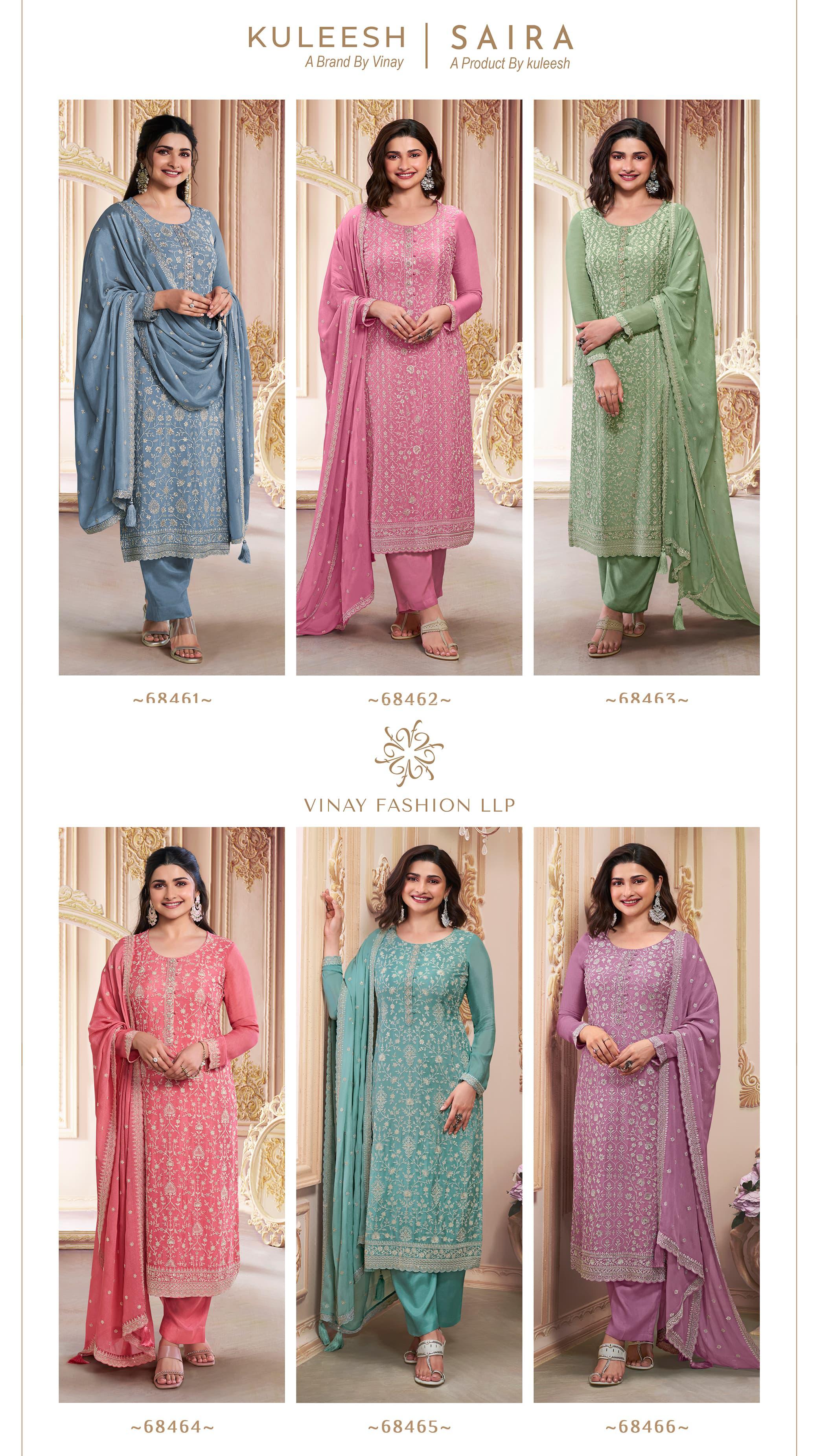 Buy Online Saira Kuleesh By Vinay Fashion 6 Pcs of Full Catalogue at Wholesale Price. Looking for Saira Kuleesh By Vinay Fashion Full Catalouge at Best Price? Buy Now Saira Kuleesh By Vinay Fashion at Wholesale Rate of Rs 11994 with Total 6 Pcs from authroized dealer and supplier of Brand. Cost of Each piece is just only Rs 1999 which is very low and affordable price to resale the product in your retail store ,This is Surat based Wholesale Supplier & Dealer of Brand. Click on Brand name to Know more about Brand's products.Call or Whatsapp on 9898838984 for booking or enquiry