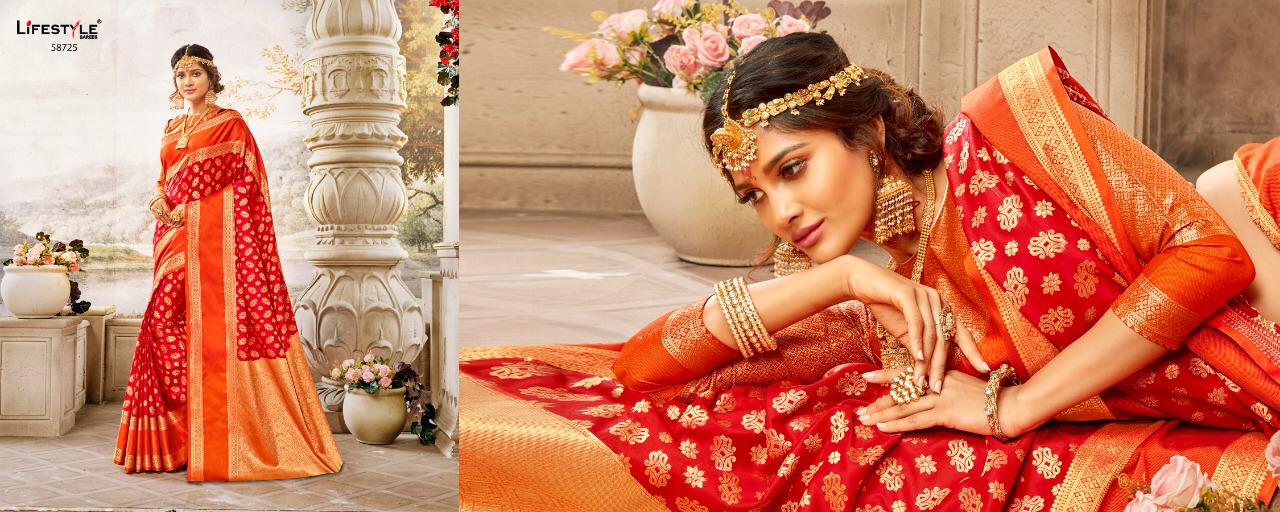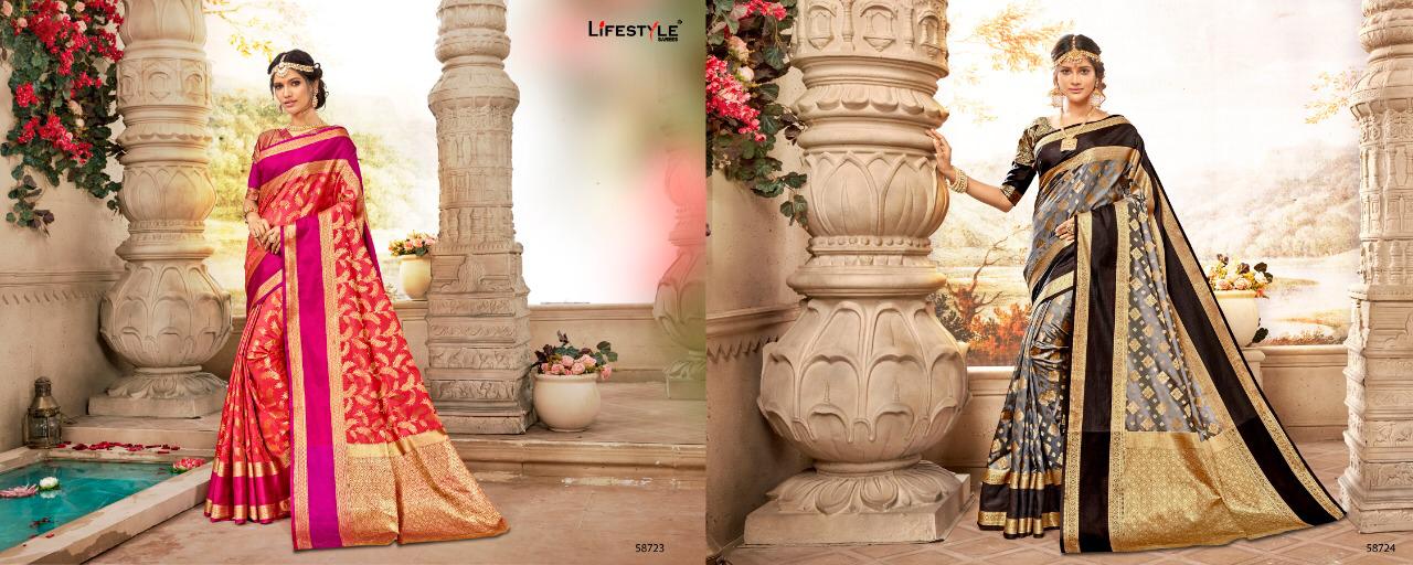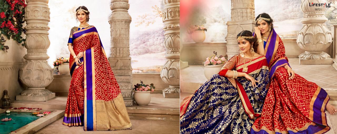 Buy Online Sajawat 2 By Lifestyle Series 58721 To 58726 Silk Designer Traditional Wear Sarees Wholesale Supplier Gujarat 6 Pcs of Full Catalogue at Wholesale Price. Looking for Sajawat 2 By Lifestyle Series 58721 To 58726 Silk Designer Traditional Wear Sarees Wholesale Supplier Gujarat Full Catalouge at Best Price? Buy Now Sajawat 2 By Lifestyle Series 58721 To 58726 Silk Designer Traditional Wear Sarees Wholesale Supplier Gujarat at Wholesale Rate of Rs 6180 with Total 6 Pcs from authroized dealer and supplier of LIFESTYLE Brand. Cost of Each piece is just only Rs 1030 which is very low and affordable price to resale the product in your retail store ,This is Surat based Wholesale Supplier & Dealer of LIFESTYLE Brand. Click on Brand name to Know more about LIFESTYLE Brand's products.Call or Whatsapp on 9898838984 for booking or enquiry