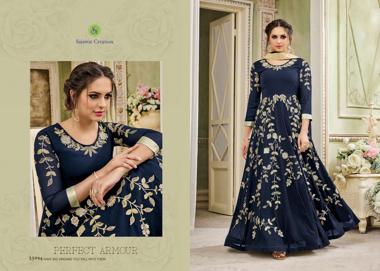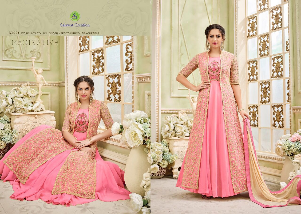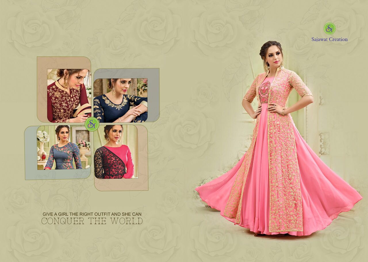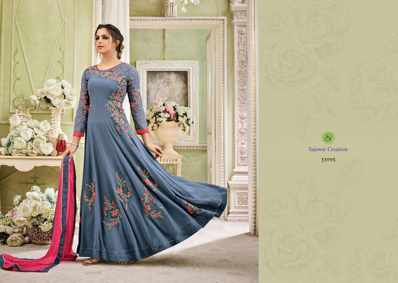 Buy Online Sajawat Creation Nivati Vl 1 33091 To 33095 Series Gown Suit 5 Pcs of Full Catalogue at Wholesale Price. Looking for Sajawat Creation Nivati Vl 1 33091 To 33095 Series Gown Suit Full Catalouge at Best Price? Buy Now Sajawat Creation Nivati Vl 1 33091 To 33095 Series Gown Suit at Wholesale Rate of Rs 7975 with Total 5 Pcs from authroized dealer and supplier of SAJAWAT Brand. Cost of Each piece is just only Rs 1595 which is very low and affordable price to resale the product in your retail store ,This is Surat based Wholesale Supplier & Dealer of SAJAWAT Brand. Click on Brand name to Know more about SAJAWAT Brand's products.Call or Whatsapp on 9898838984 for booking or enquiry