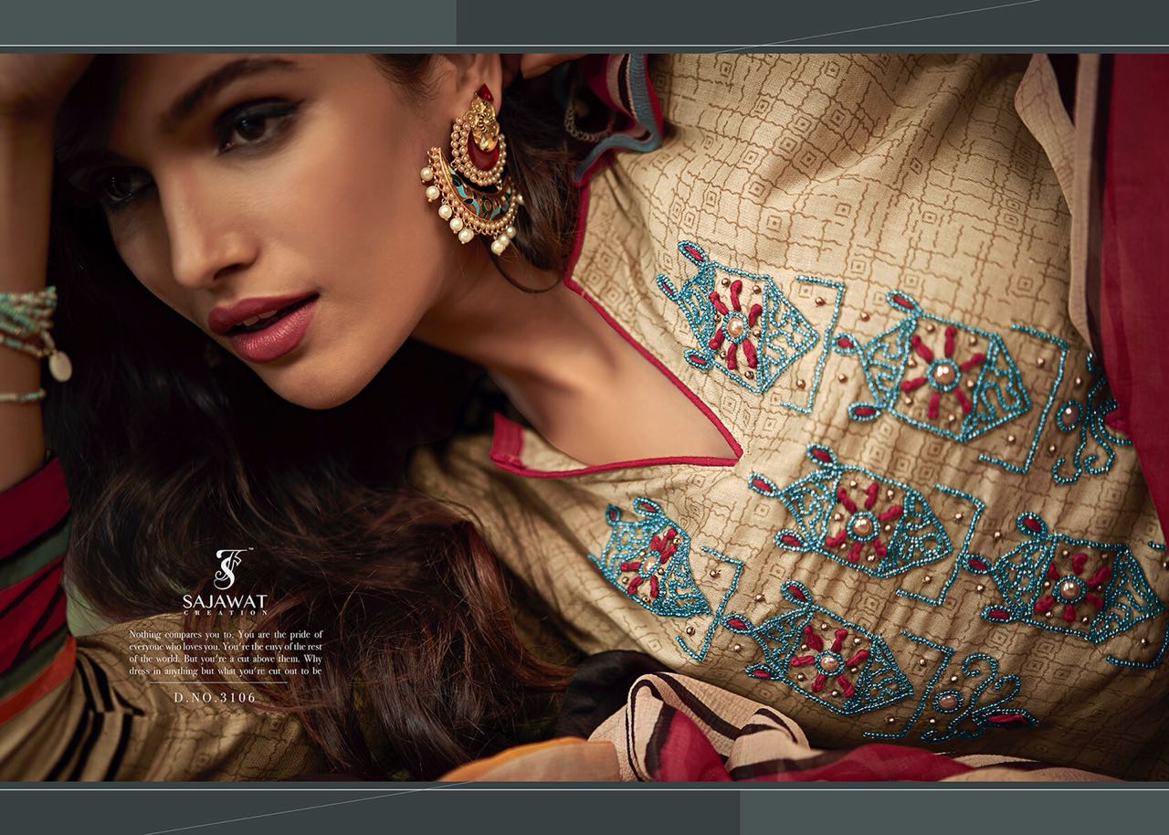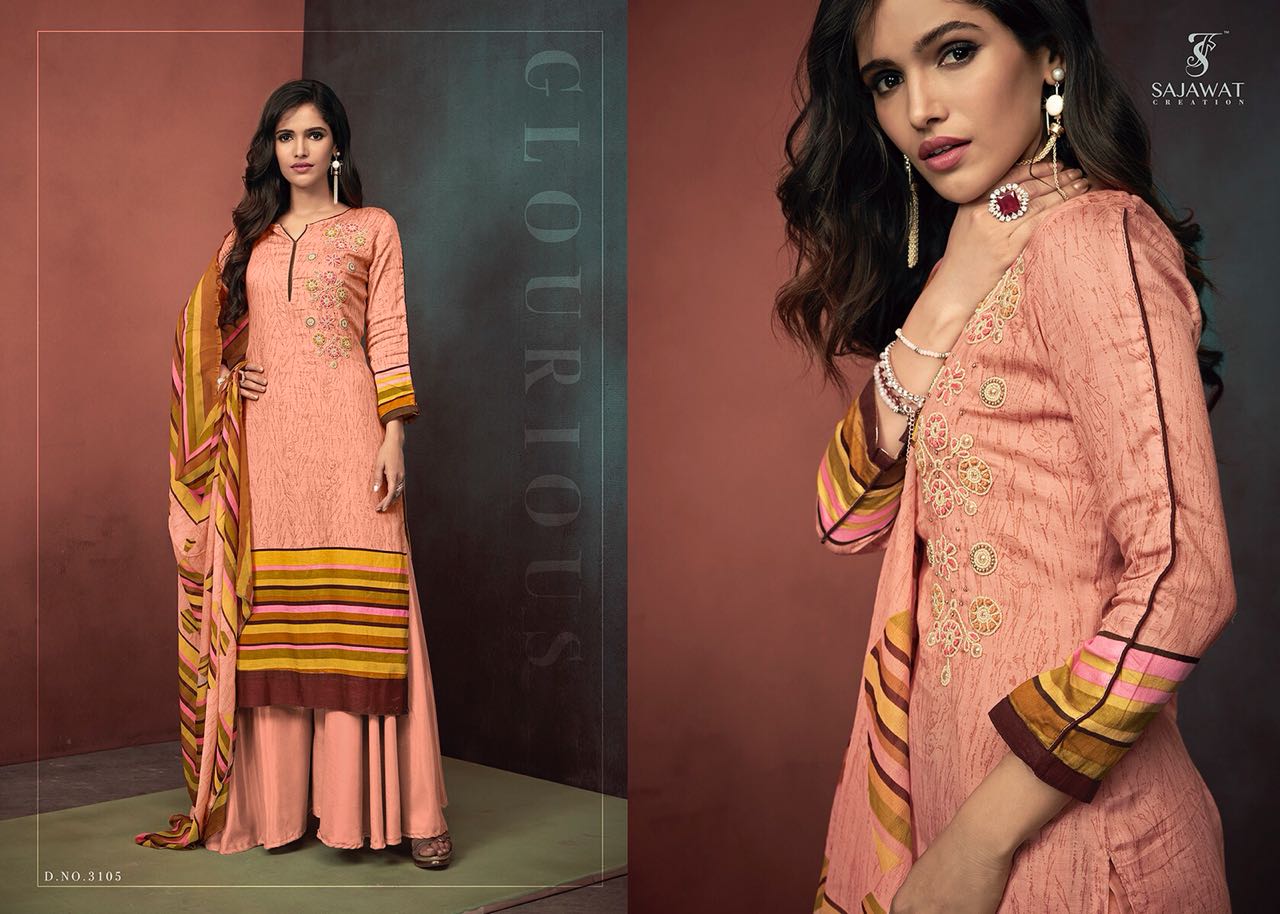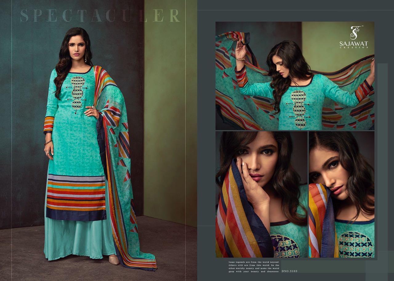 Buy Online Sajawat Creation Noor 3101 Series Cotton Satin Plazo Salwar Kameez Catlog Wholesale Dealer And Supplier Surat 8 Pcs of Full Catalogue at Wholesale Price. Looking for Sajawat Creation Noor 3101 Series Cotton Satin Plazo Salwar Kameez Catlog Wholesale Dealer And Supplier Surat Full Catalouge at Best Price? Buy Now Sajawat Creation Noor 3101 Series Cotton Satin Plazo Salwar Kameez Catlog Wholesale Dealer And Supplier Surat at Wholesale Rate of Rs 5200 with Total 8 Pcs from authroized dealer and supplier of SAJAWAT Brand. Cost of Each piece is just only Rs 650 which is very low and affordable price to resale the product in your retail store ,This is Surat based Wholesale Supplier & Dealer of SAJAWAT Brand. Click on Brand name to Know more about SAJAWAT Brand's products.Call or Whatsapp on 9898838984 for booking or enquiry