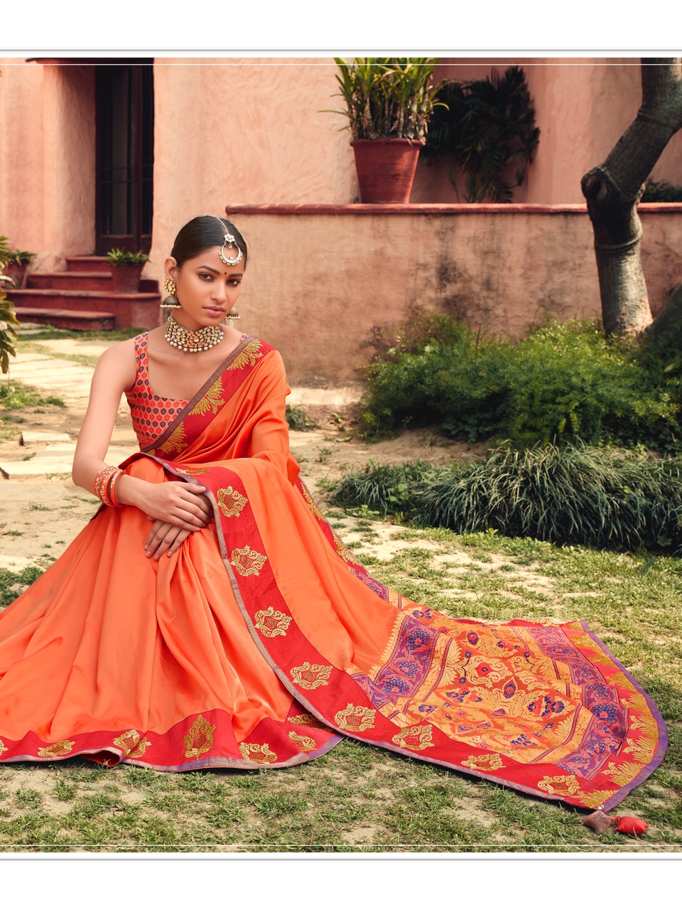 Sajawat Silk Shangrila Present heavy Wedding Designer Soft Zari Silk With New Work Border And Fancy Richpallu...!! 8 pc 1395/- Set to set only 5% GST |