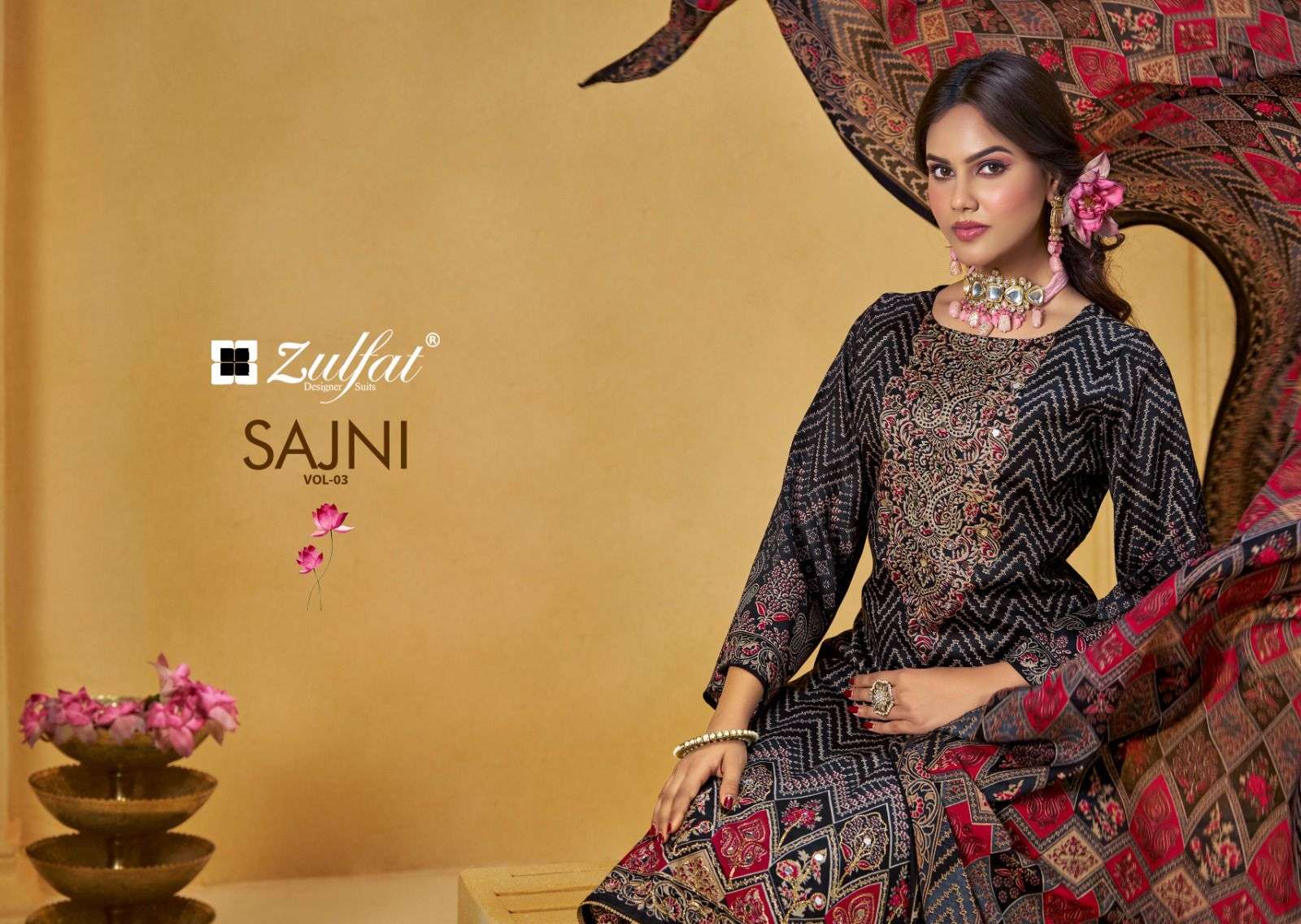 SAJNI VOL 3 by Zulfat Jam Cotton exclusive designer suit collection manufacturer surat