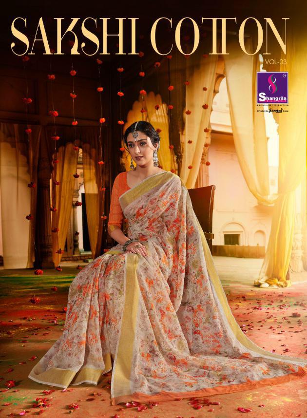 Sakshi Cotton Vol 3 By Shangrila 4531 Series Fancy Linen Slub Printed Saree Collection Wholesaler Surat