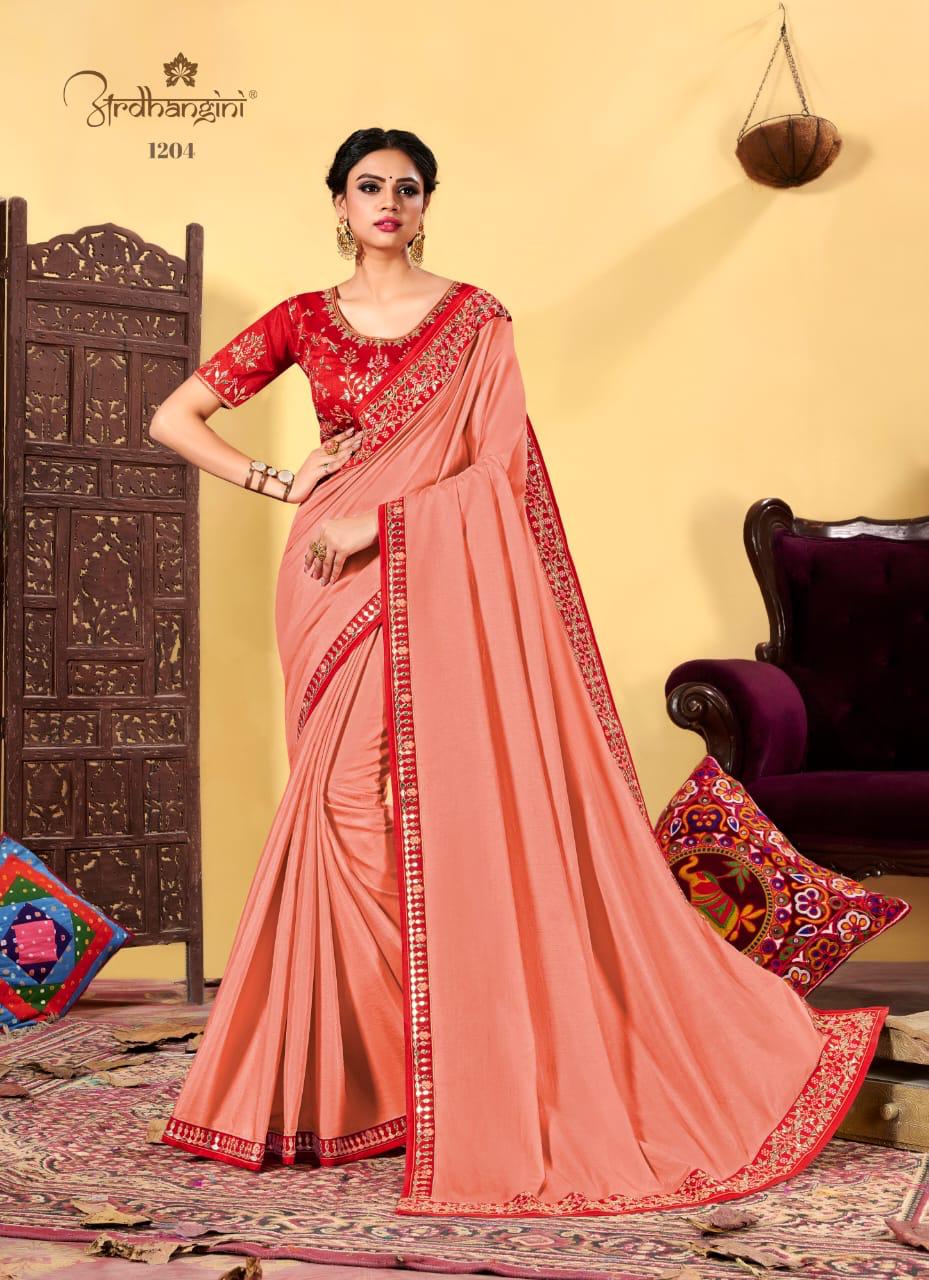 Brand - AARDHNGINI. *ARDHANGINI* Presents - OUR MOST AWAITED CATALOGUE????????? ?????????? Â?Â?Â?Â? *SAKSHI VOL 5* Â?Â?Â?Â? ? SAREE = HEAVY DOLA SILK ? BLOUSE = HEAVY BANHLORI *Rate*- *1425 No any less * *HURRY UP....* ?????? ?*LIMITED STOCK*? NOTE =* set & loose & singel * NOTE - * No any less * Nett rate . 100+single |