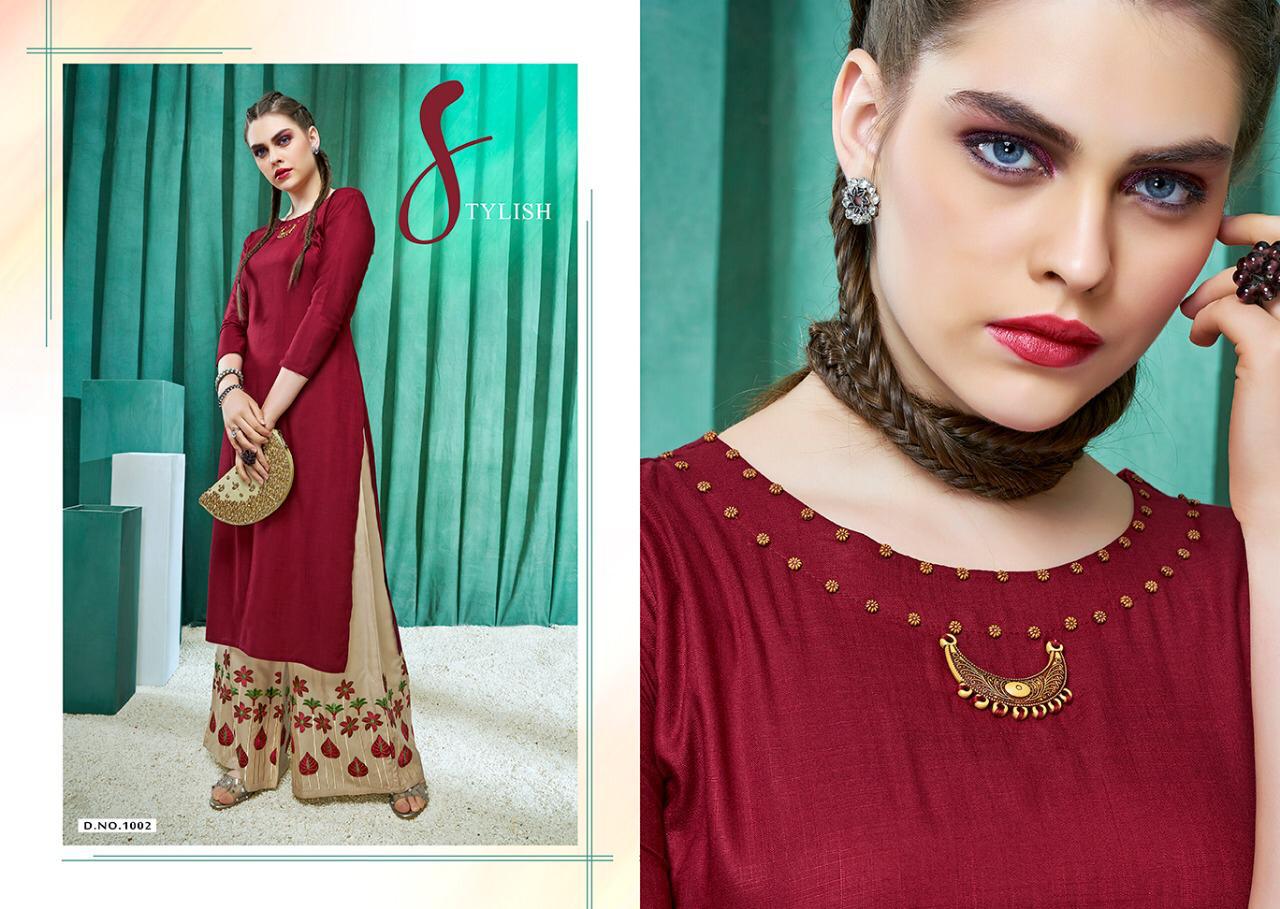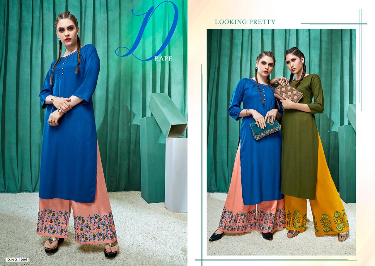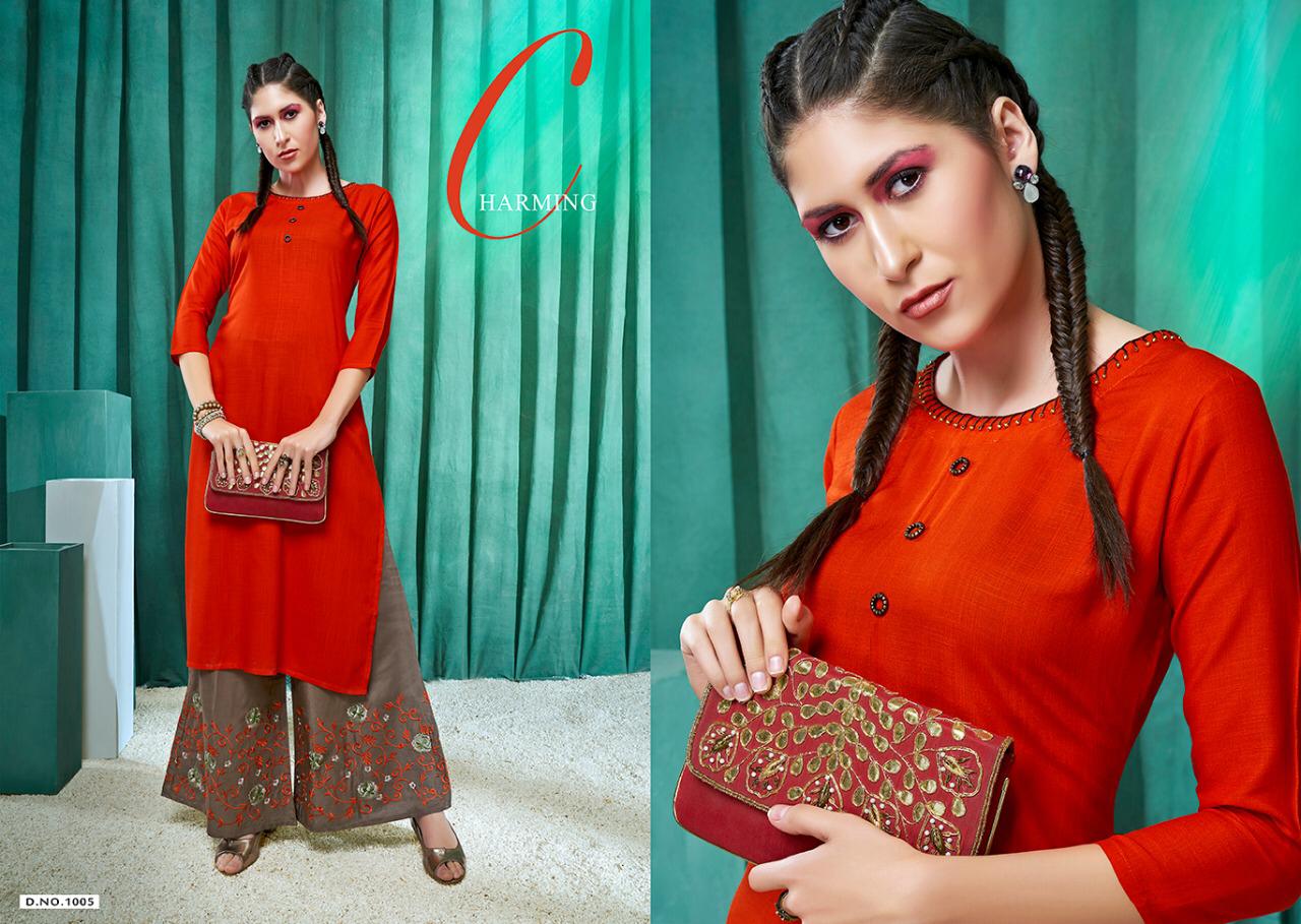 Salary By S More Fashion 1001 Series Fancy Reyon Slub Kurti With Plazzo Collection Wholesaler Surat