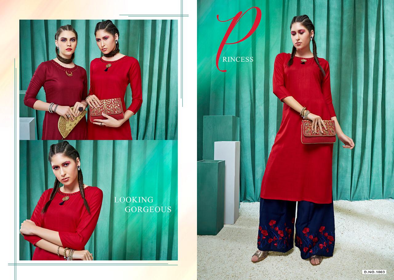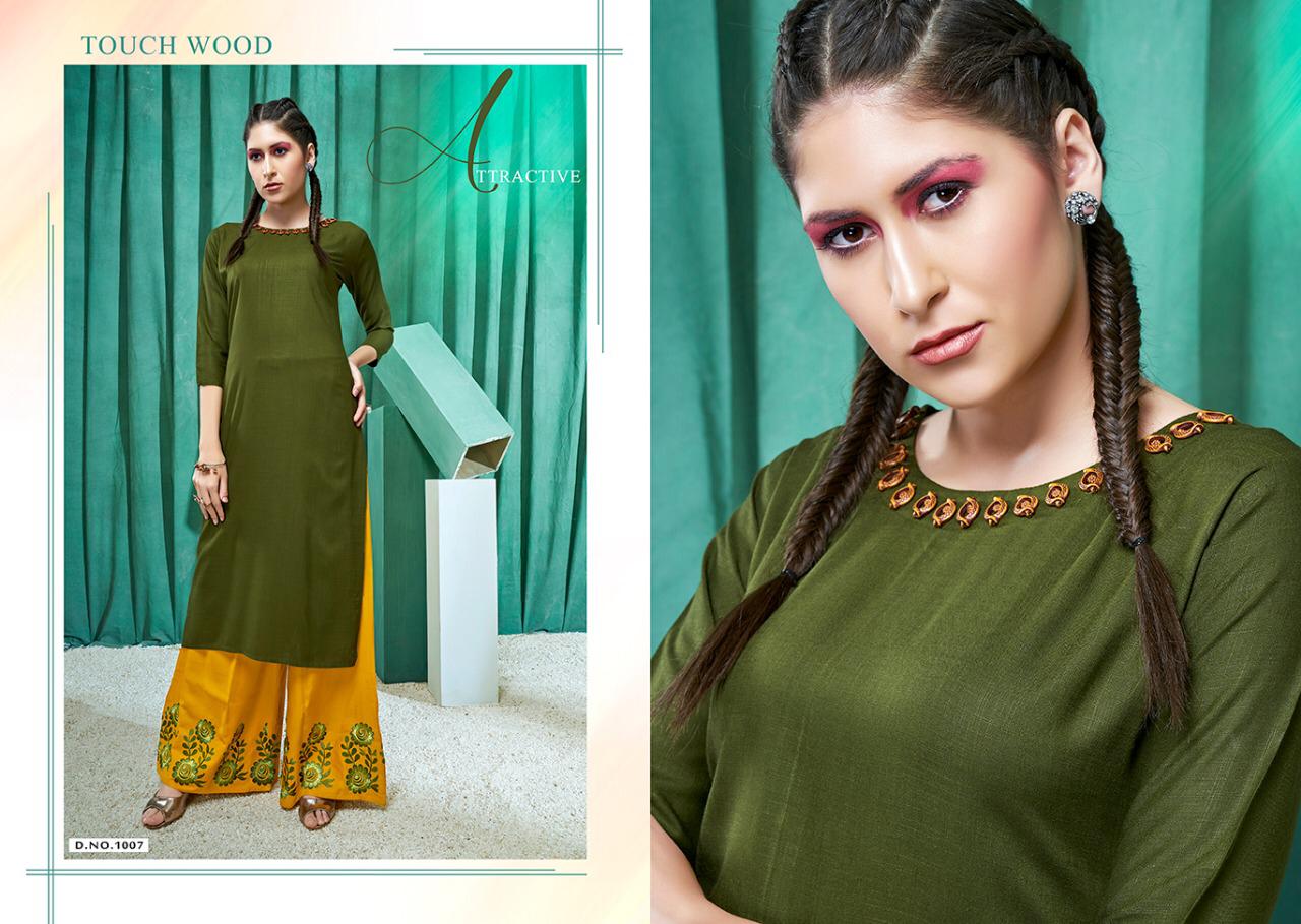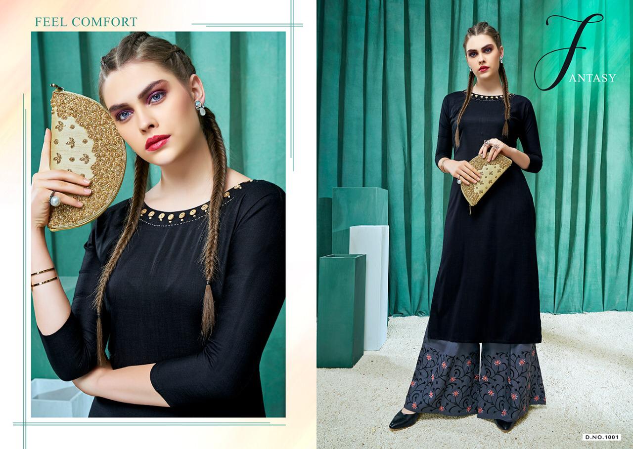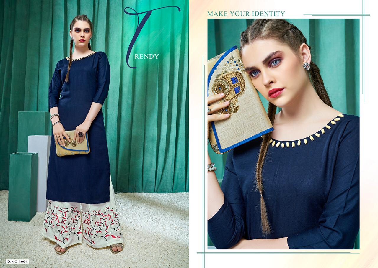 Salary By S More Fashion 1001 Series Fancy Reyon Slub Kurti With Plazzo Collection Wholesaler Surat