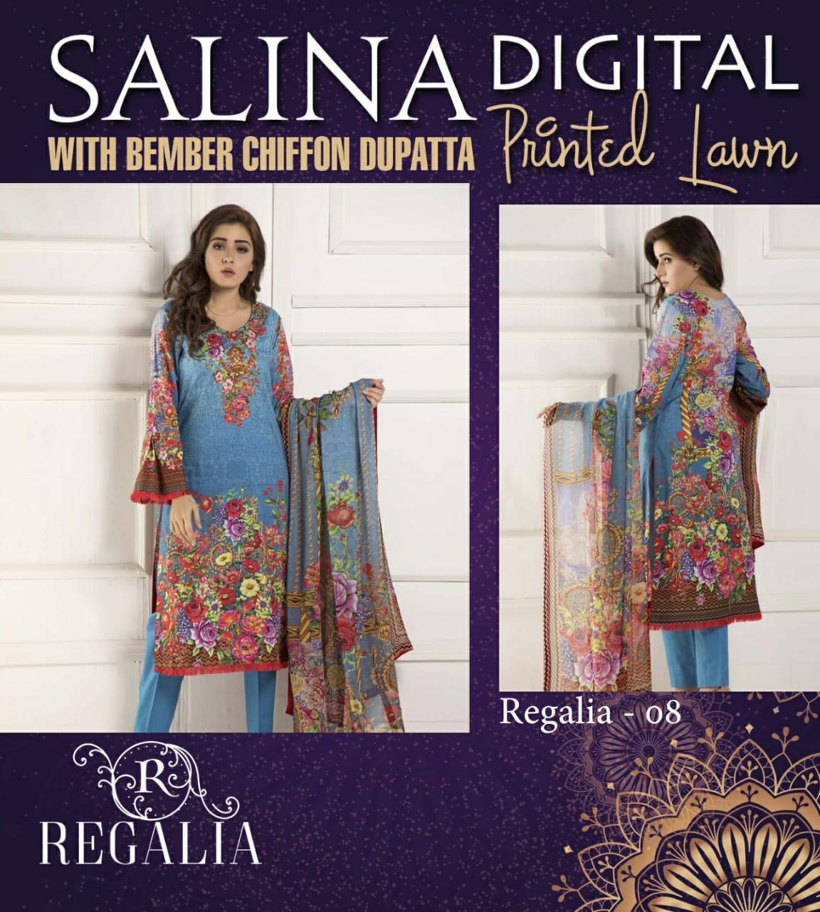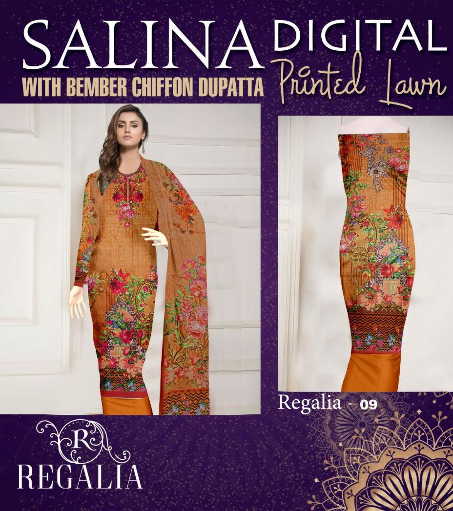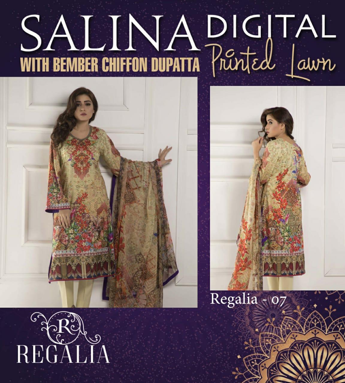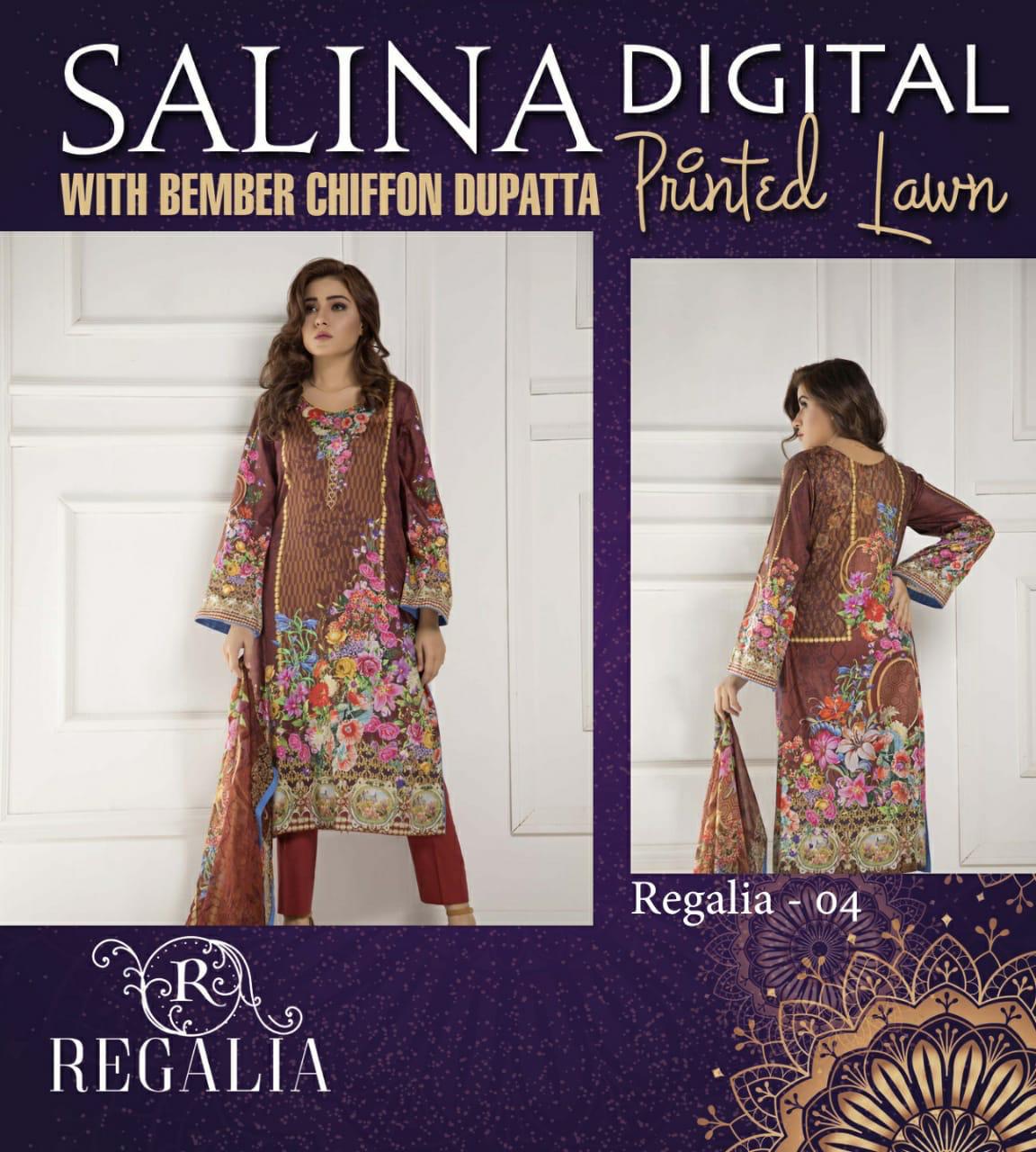 Salina Digital Printed Lawn By Regalia Printed Suits Collection Wholesale Supplier Surat