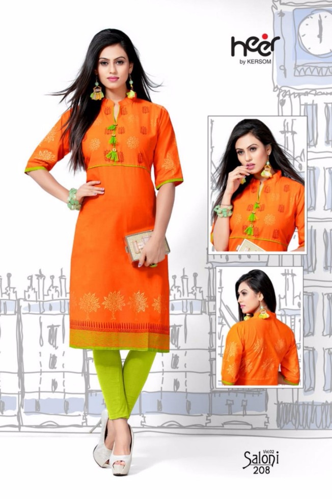 Heer By Kersom - Saloni-2 Kurtis Collection *No of Designs*: 8 *Rate:*-320 *Available Sizes*: L,XL,2XL *Fabric*: Semi Lawn, Cotton *Work*: Print *Other Details*: LENGTH-40 *Redy to ship* |