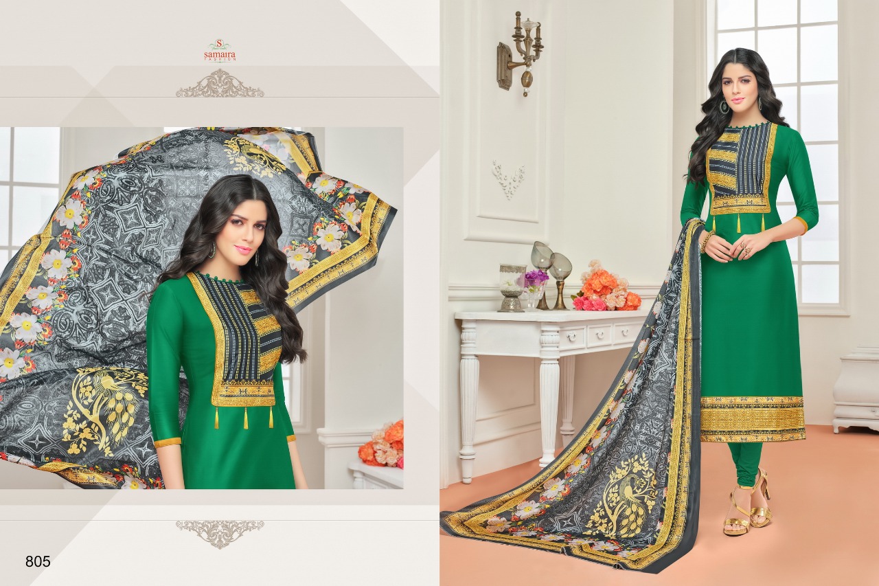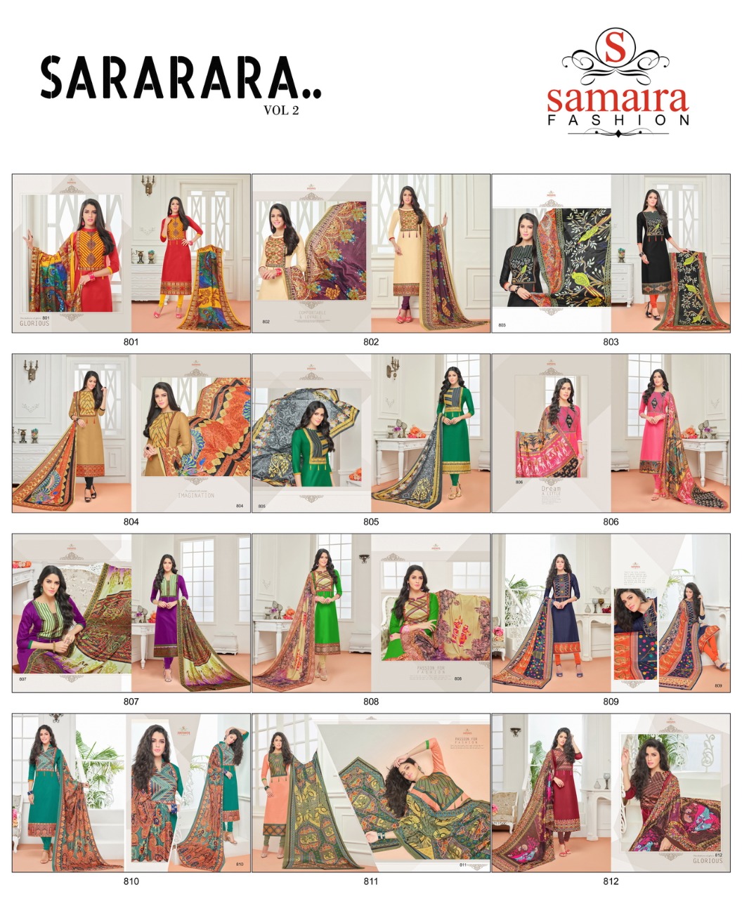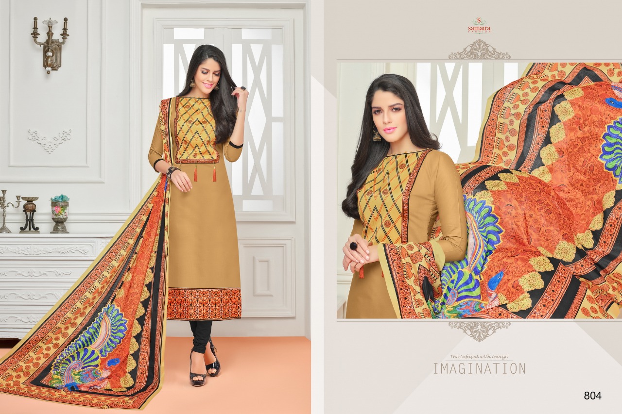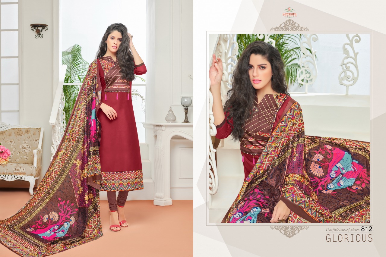 Buy Online Samaira Sararara Vol 2 801 To 812 Series Glase Cotton Suit 12 Pcs of Full Catalogue at Wholesale Price. Looking for Samaira Sararara Vol 2 801 To 812 Series Glase Cotton Suit Full Catalouge at Best Price? Buy Now Samaira Sararara Vol 2 801 To 812 Series Glase Cotton Suit at Wholesale Rate of Rs 7140 with Total 12 Pcs from authroized dealer and supplier of Samaira Fashion Brand. Cost of Each piece is just only Rs 595 which is very low and affordable price to resale the product in your retail store ,This is Surat based Wholesale Supplier & Dealer of Samaira Fashion Brand. Click on Brand name to Know more about Samaira Fashion Brand's products.Call or Whatsapp on 9898838984 for booking or enquiry