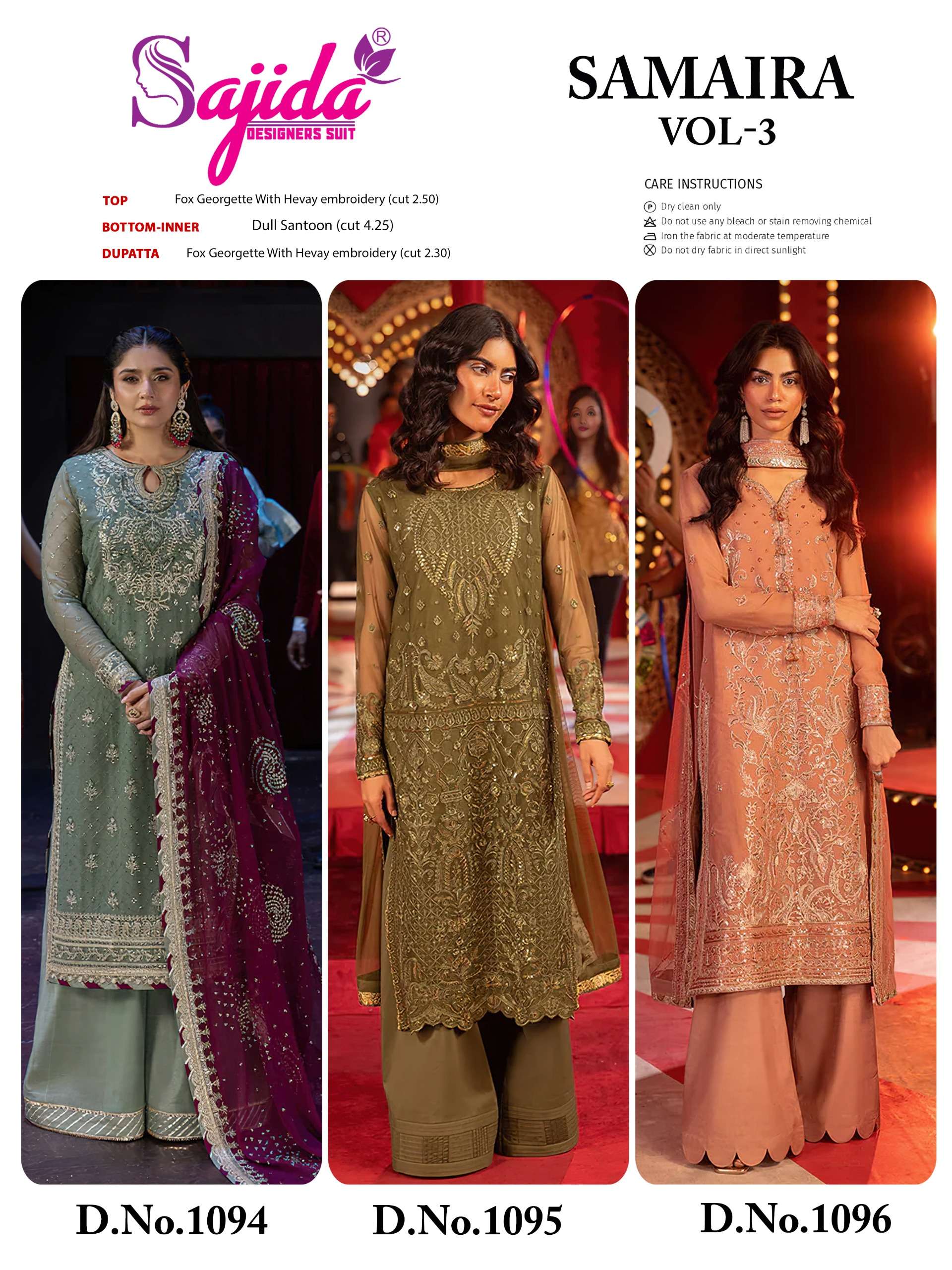 SAMAIRA VOL 3A SD 1094 1095 1096 by SAJIDA DESIGNERS SUIT Collection manufacturers surat