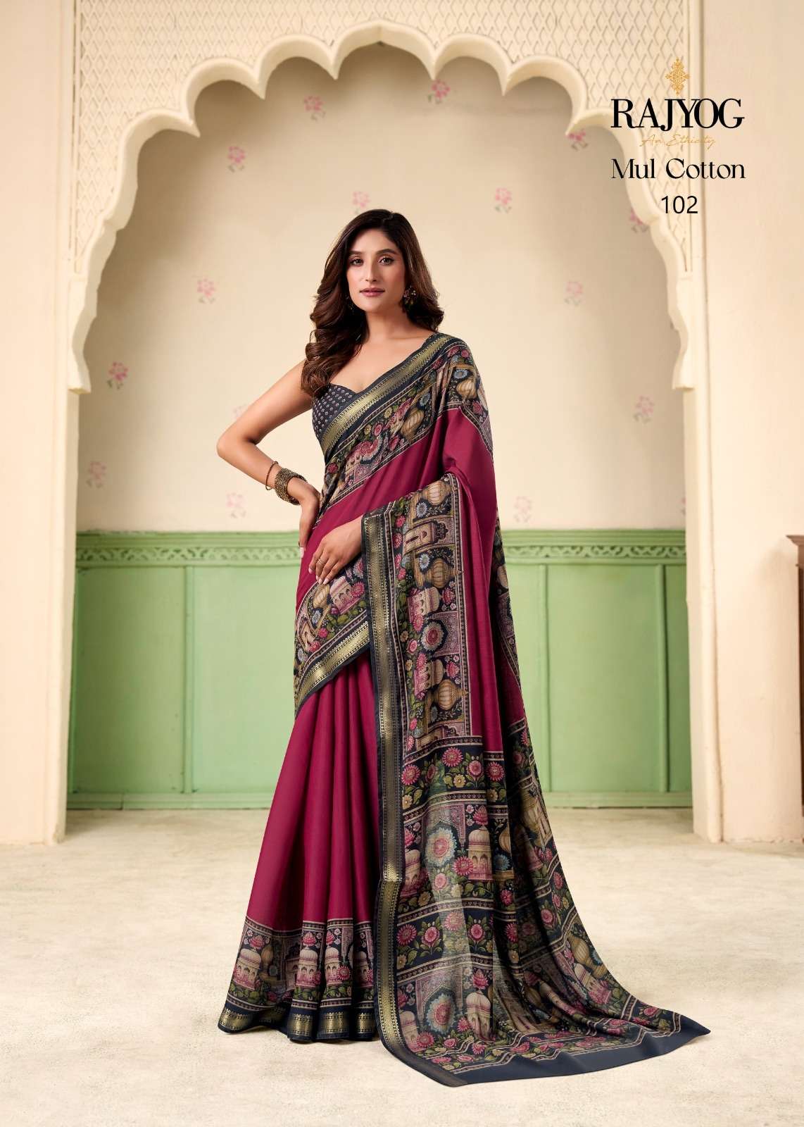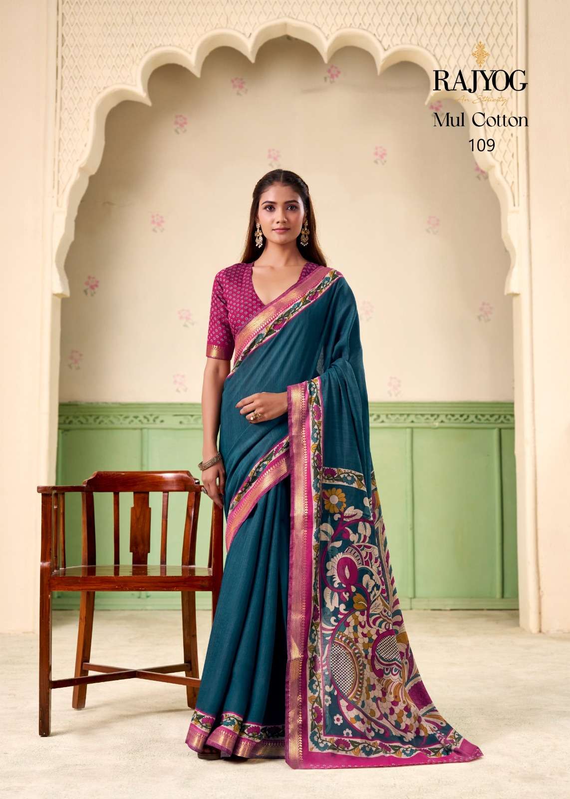 ➡️Catalog - *Samantha Silk* ➡️Fabric - *Soft Mul cotton With amazing Print & Zari Border* ➡️Rate - *595+5%*