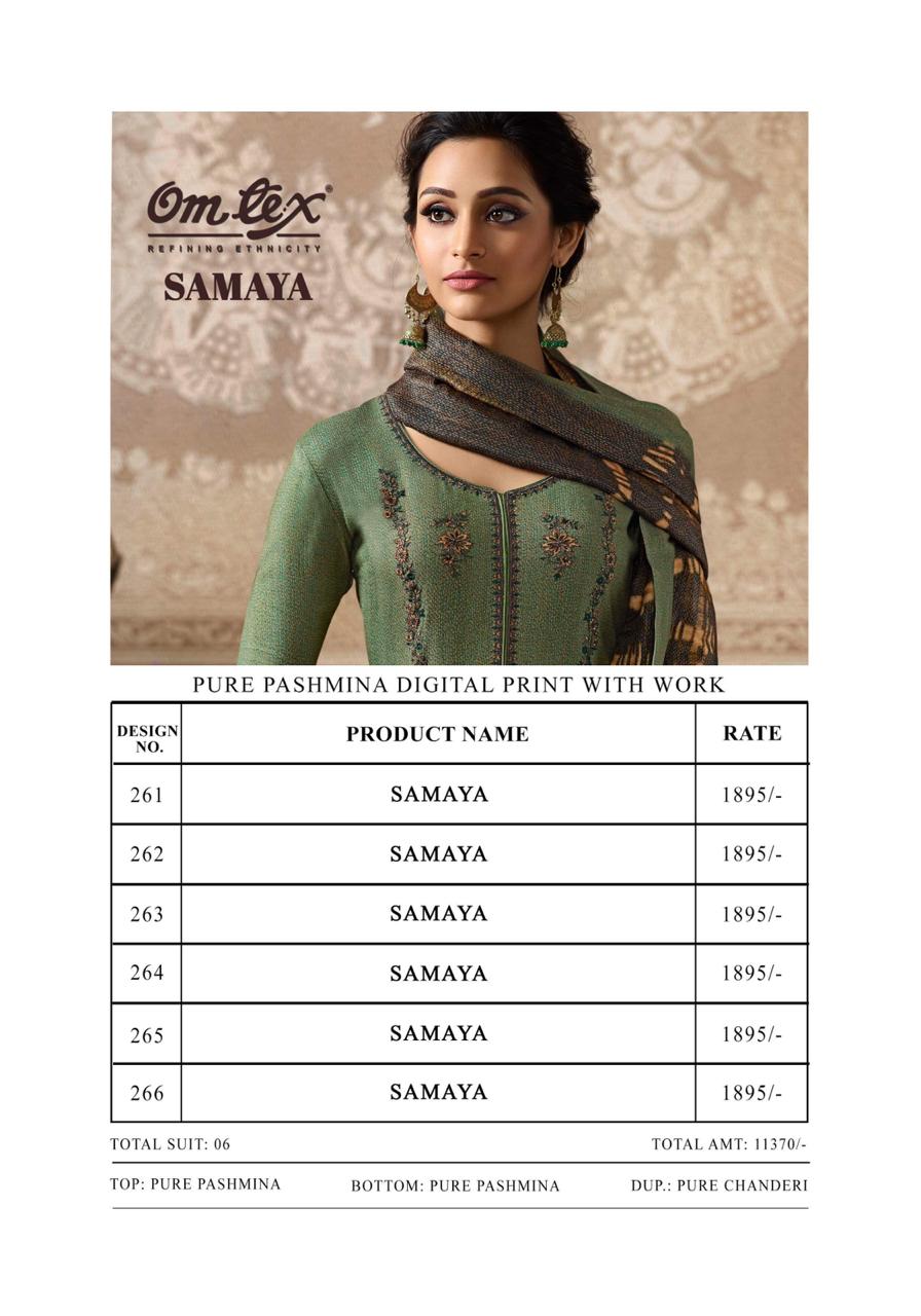 Samaya By Omtex 261 Series Fancy Pure Pashmina Digital Printed Salwar Kameez Catlog Wholesale Dealer Surat