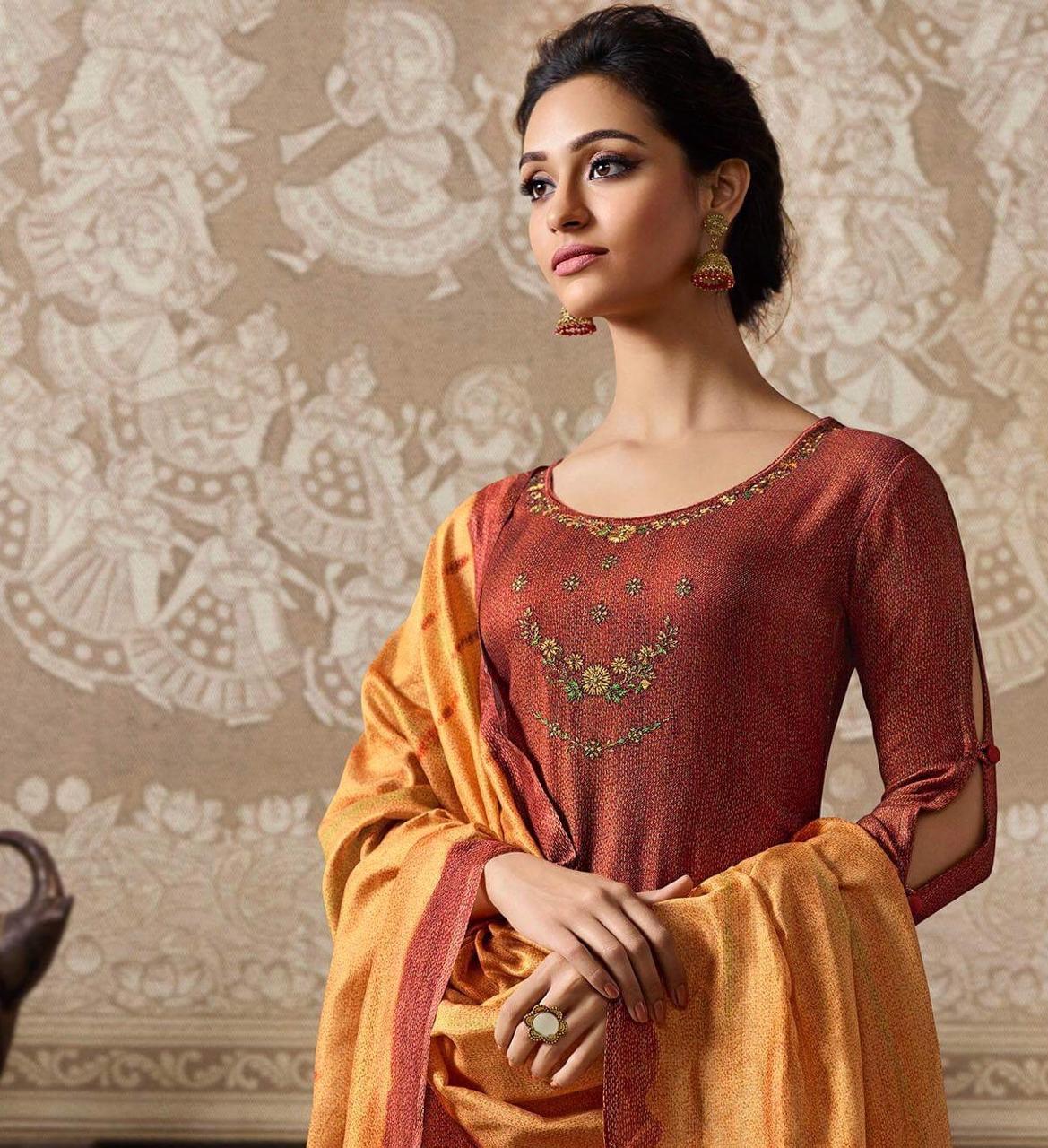 *Omtex* presents its winter woolen collection *SAMAYA* Pure pashmina digital print with embroidery work top with pure pashmina bottom and pure chanderi dupatta/bemberg dupatta *With chanderi dup-1895/-* Set to set . GST 5 Percent Extra. 5%Gst Applicable Set to set Delivery 2-3 days |